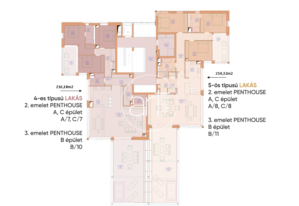 A penthouse lakások teraszai bioklimatikus pergolával felszereltek, amelyek szükség esetén télikertként is használhatóak, illetve igény szerint egy 6 méter hosszú és 2,4 méter széles medence is beépíthető.