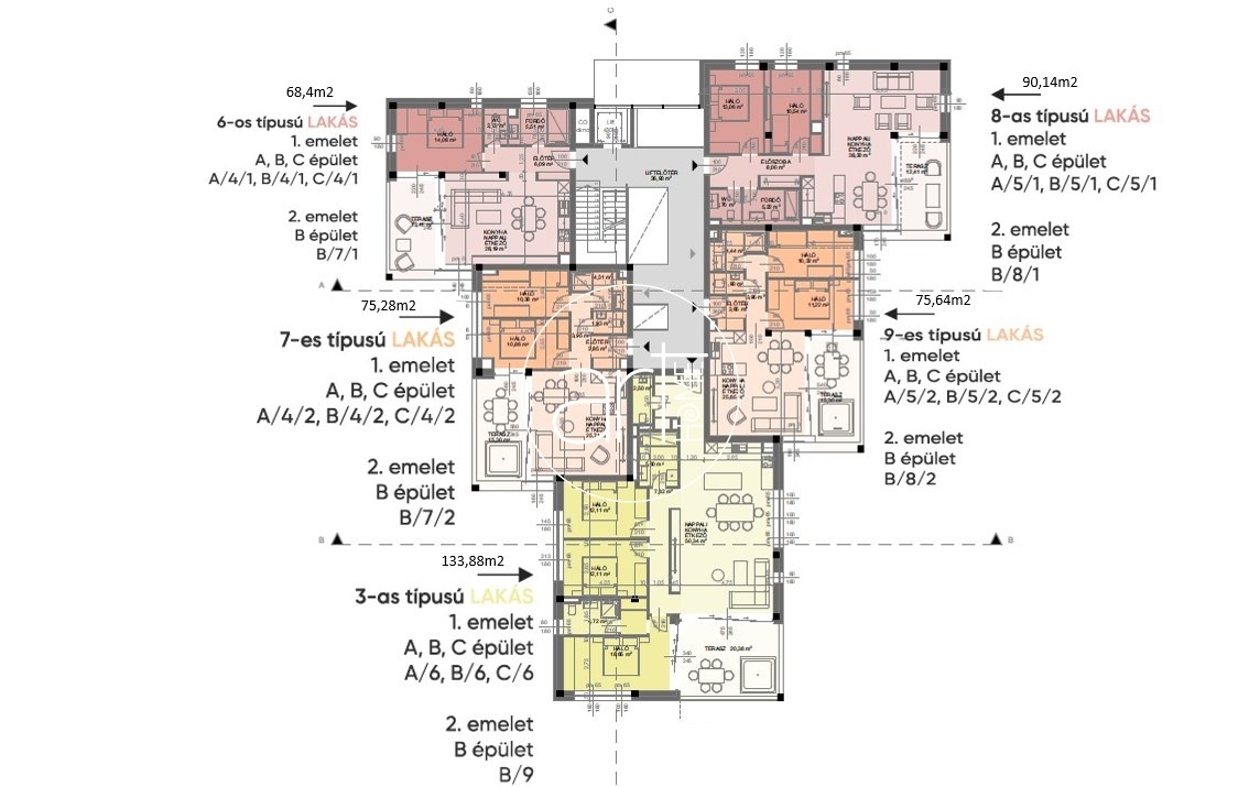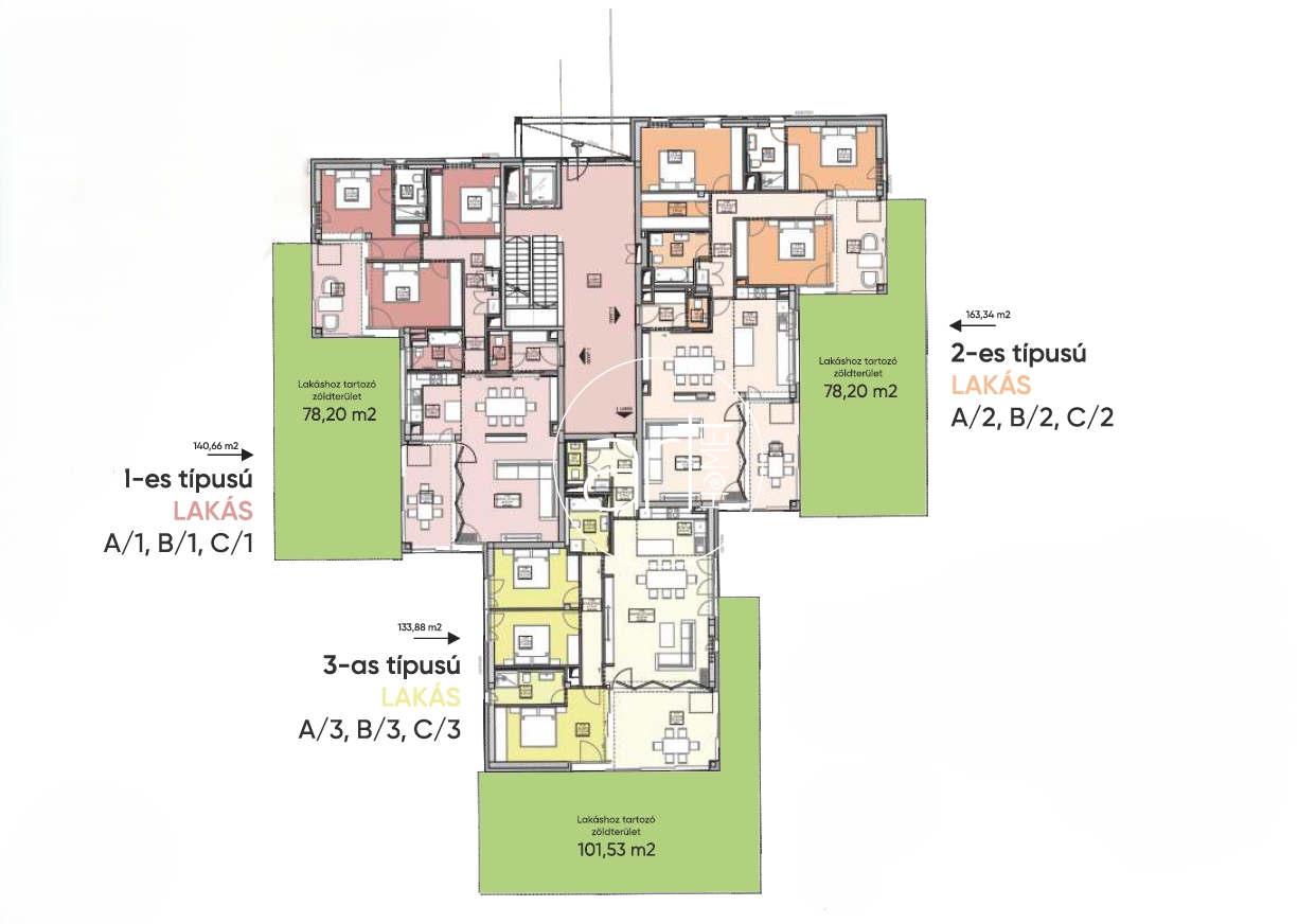 Az alsó szinteken kertkapcsolatos lakások kerülnek kialakításra, a középső szinteken szintenként három lakás, míg a legfelső emeleten két-két exkluzív penthouse kínál csodálatos körpanorámás kilátást a Balatonra.