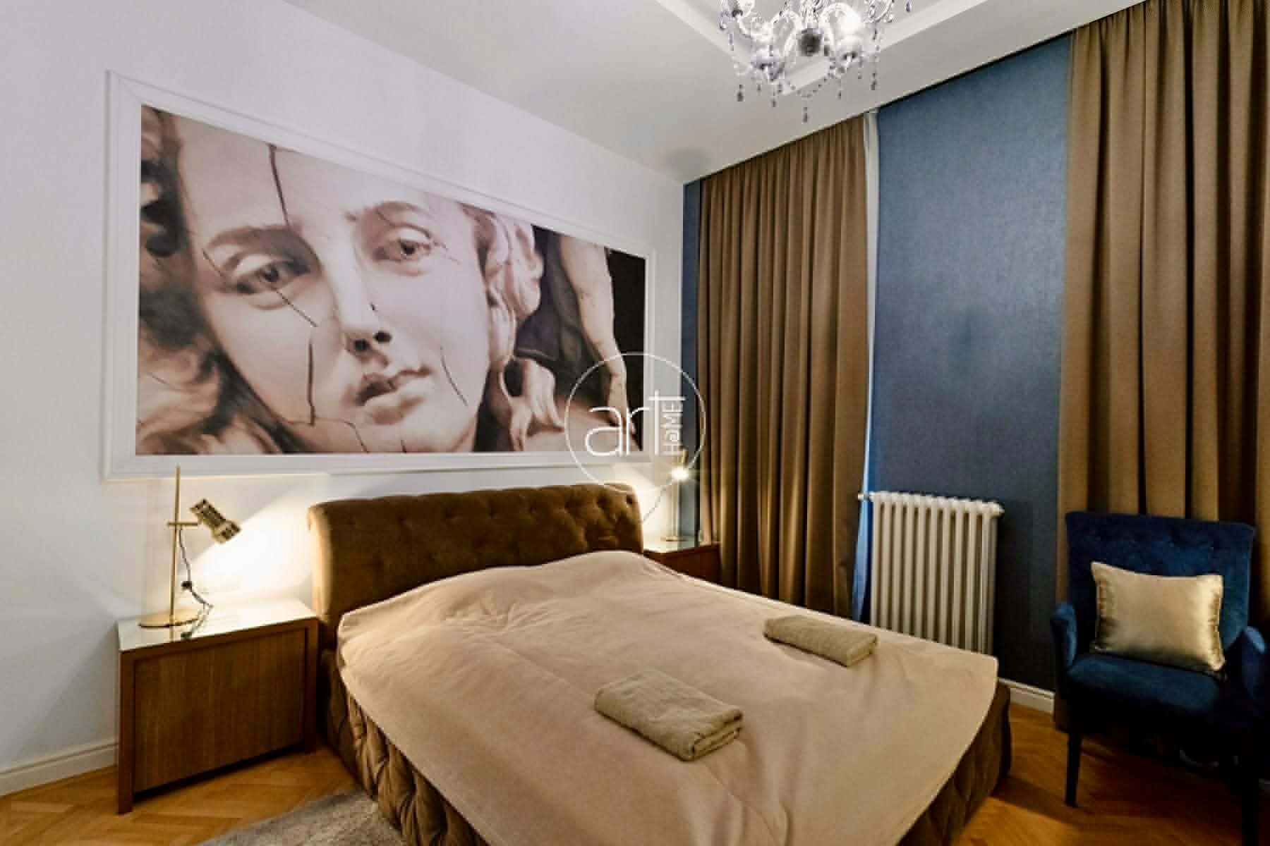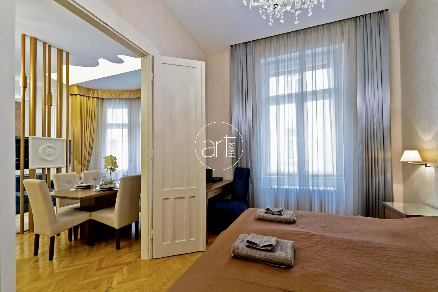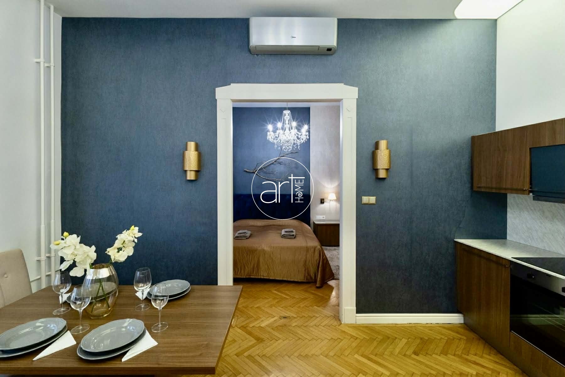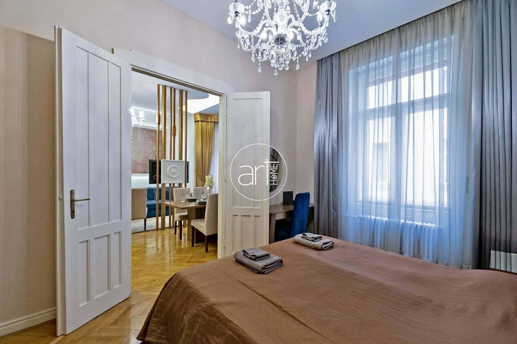 Budapest egyik legpatinásabb utcájában, az V. kerület ikonikus Október 6. utcájában kínálunk megvételre egy nappali + 2 szobás, I. emeleti, belsőépítész által megálmodott, exkluzív polgári lakást.