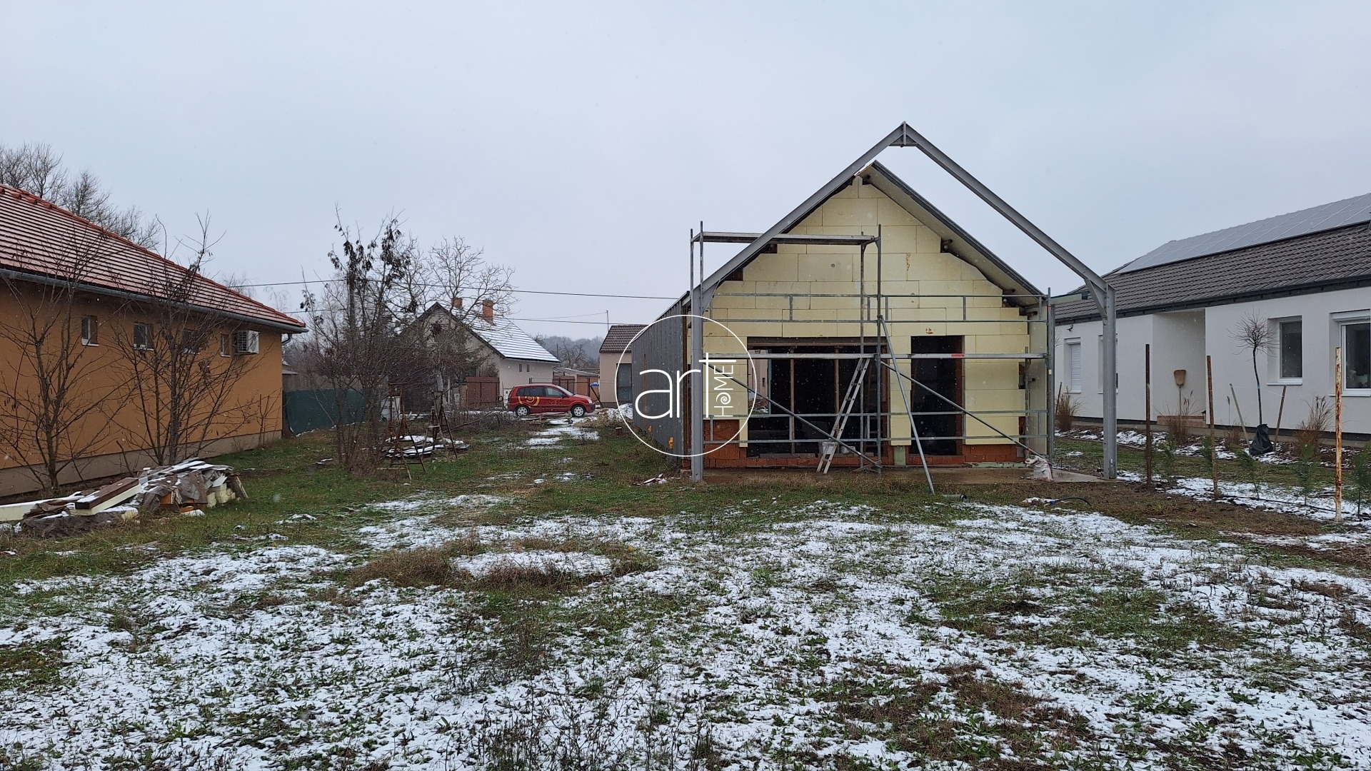 Az ár tartalmazza a következőket: alapozás, teherhordó szerkezet, falazat, födém, tetőszerkezet, külső nyílászárók beépítve, befejezett külső megjelenés, előkészített közműkiállások