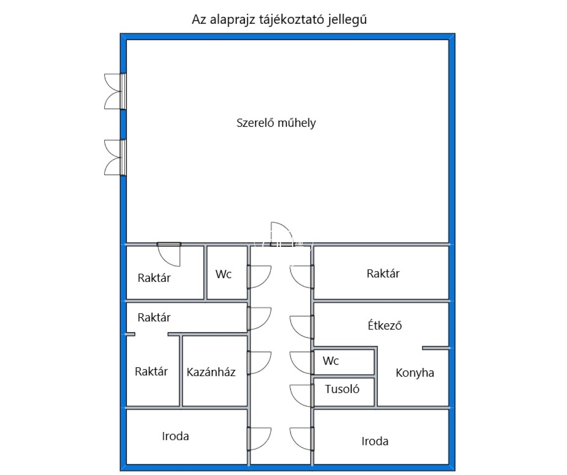 Az épület több, különálló helyiségből áll, így irodai és ipari zónákra tagolható.