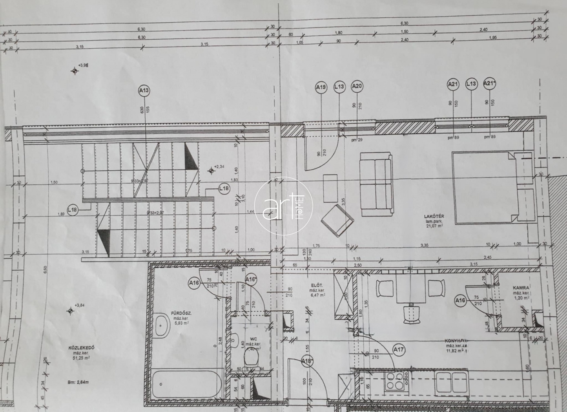 A lakás egyik különlegessége, hogy a konyha falát megnyitották a nappali felé, így egy világos, összefüggő tér jött létre, amely barátságos hangulatot áraszt. A konyha jó méretű. Új tulajdonosa egy jól tervezett, új beépített bútorral remekül kihasználhatja a rendelkezésre álló tér. Hasonló a helyzet a méretes fürdőszobával is, ami tágas, káddal felszerelt, a WC külön helyiségben található, ami különösen előnyös lehet több személy esetén. A mindennapokat tovább könnyíti a külön kialakított kamra, ami ritka előny kis alapterületű lakásoknál, hiszen praktikus tárolóhelyet biztosít. A közlekedőben szintén adott a lehetőség egy beépített szekrény elhelyezésére, ami segít rendben tartani a lakást.