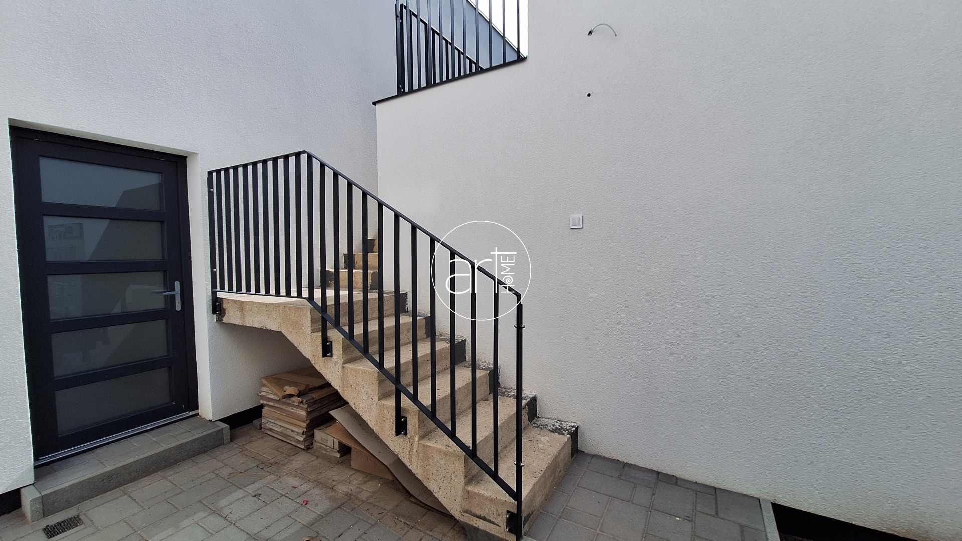 A lakás a vele egy telekre épülő sorházakhoz tartozó garázsok felett került kialakításra, közvetlen falszomszédja nincsen. Alapterülete 48 m2, amihez csatlakozik egy közel 13 m2-es privát terasz. Természetesen garázst is lehet vásárolni a lakáshoz, ennek ára 9,9M Ft (16 m2). Ez opcionális. Parkolásra kialakított helyek saját részre vagy látogatók számára a ház előtt rendelkezésre állnak. Ezen felül a lakáshoz tulajdoni lap szerint tartozik egy kb 25 m2-es saját udvarrész.