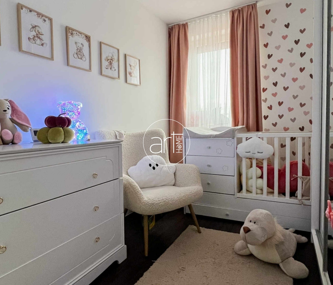 A közös helyeken kívül 2 szobát találunk a lakásban, amik egymástól távol helyezkednek el, biztosítva ezzel a privát szférát.