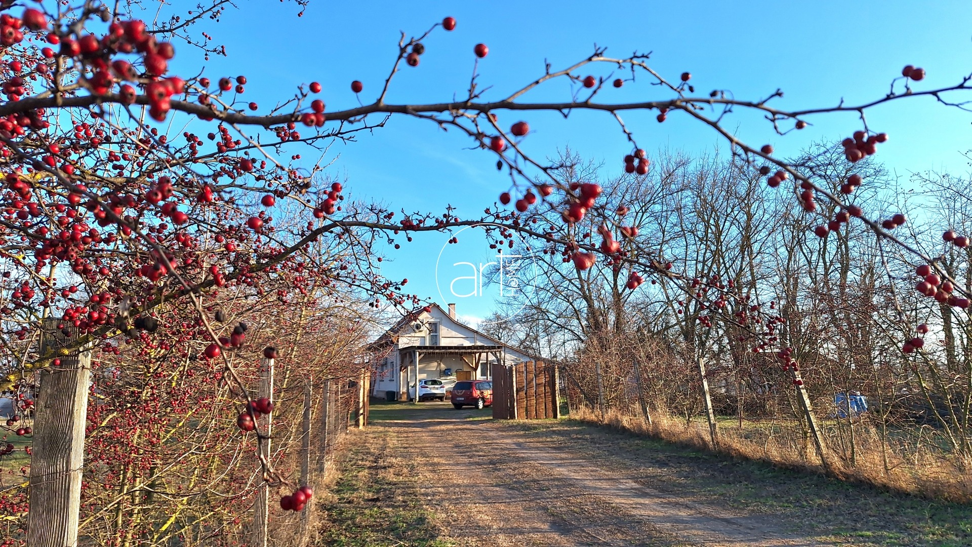 A birtok közel 5 hektár földterületen terül el, amelyet a jelenlegi tulajdonosok 5 külön helyrajzi számon vásároltak össze annak érdekében, hogy megfelelő terület álljon rendelkezésre minősített biogazdálkodásukhoz. Ezek közül két helyrajzi számon kivett tanya szerepel, ezeket együtt kerítették körbe, itt található a lakóépület, a nagy terasz, valamint a számos gazdasági épület, hangár, és mobilgarázs. Ápolt, gondozott, fákkal és hasznos bokrokkal beültetett udvara igazi paradicsom. A további területek Natura 2000-es besorolásúak, változatos hasznosítással: termő gyümölcsösök, szántó, kaszáló – igazi kincsesbánya annak, aki hosszú távon gondolkodik.