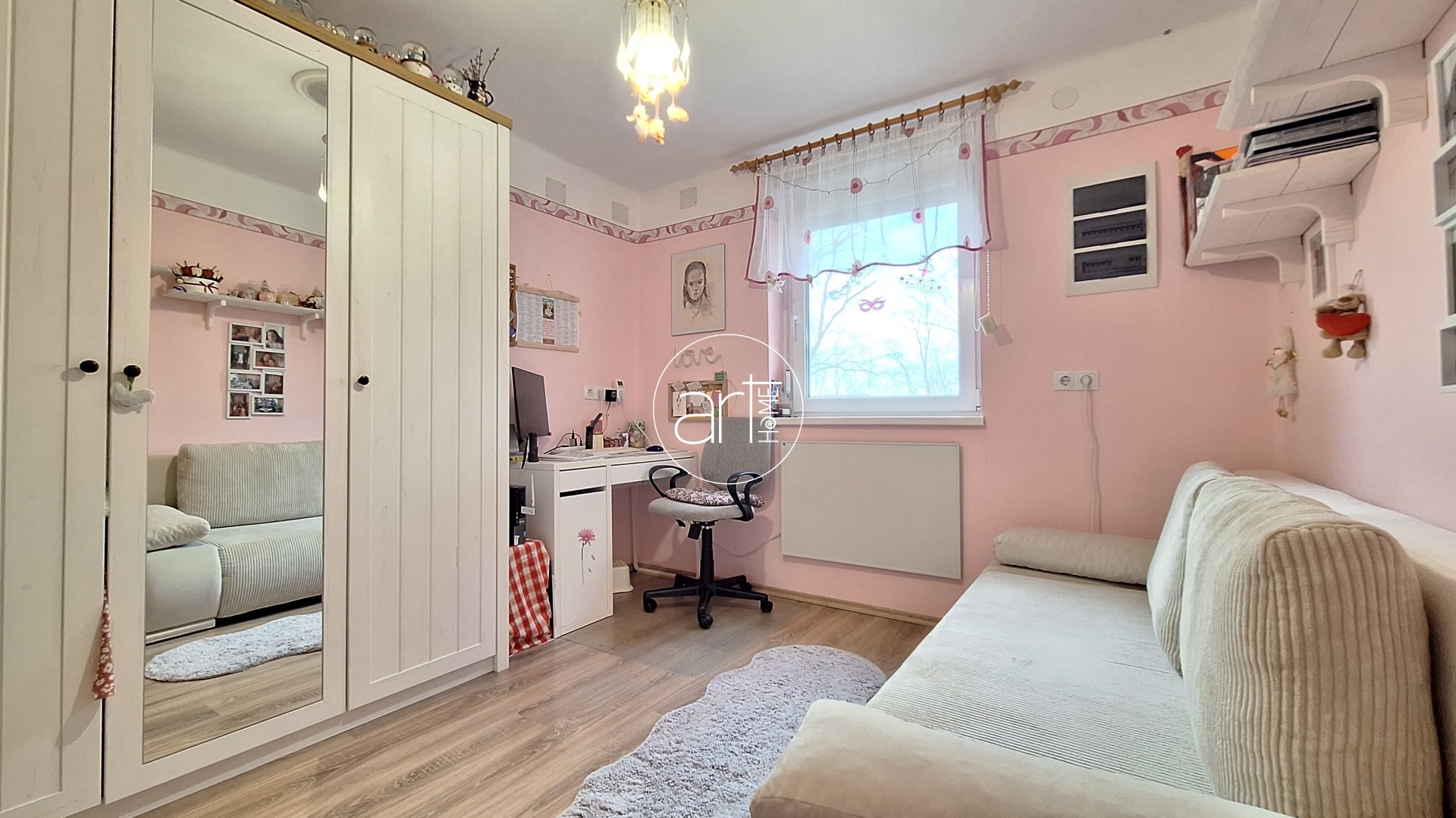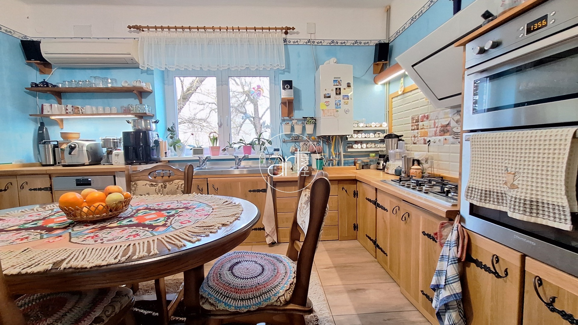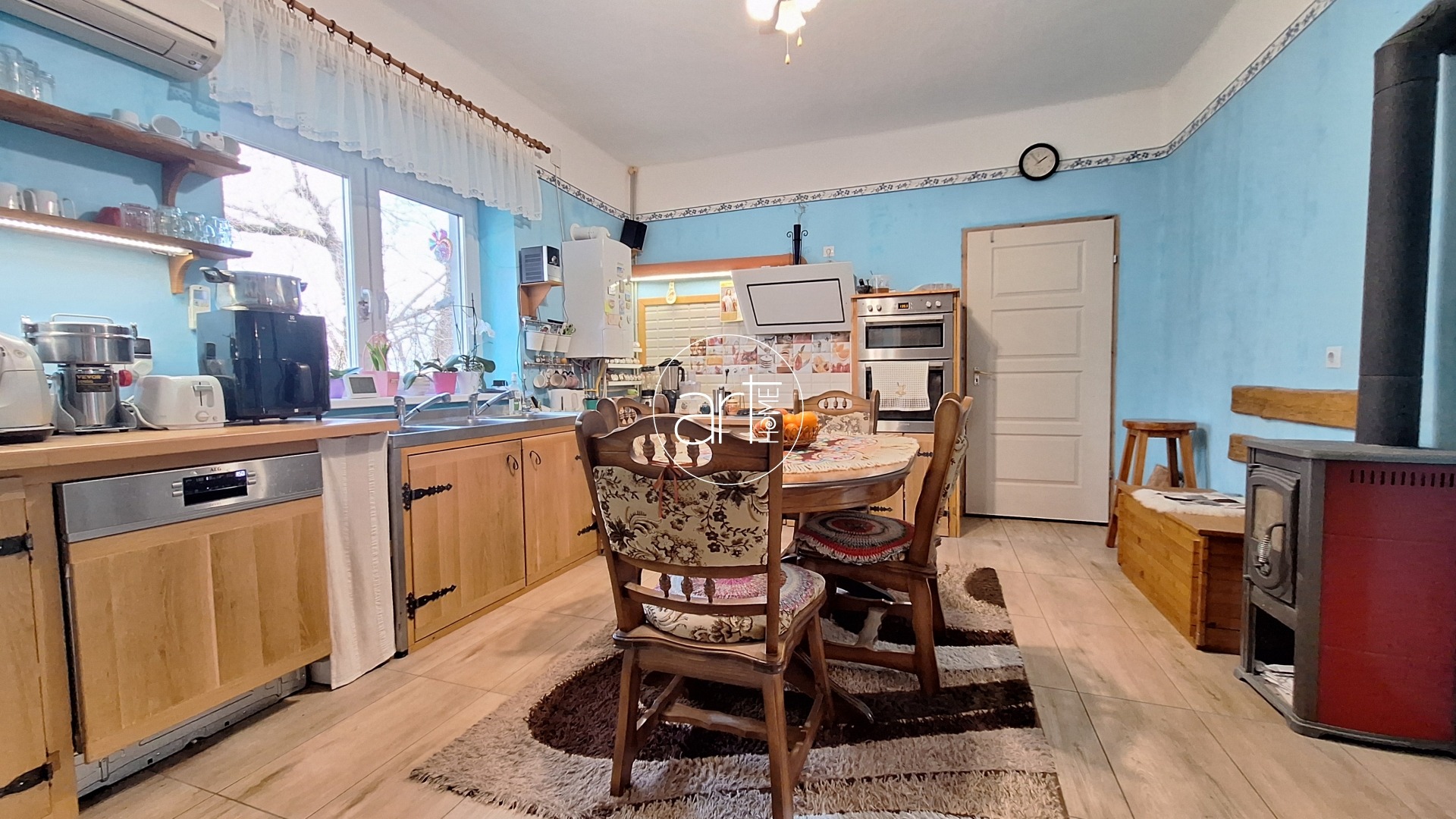 - központi gáz kazánról működő padlófűtés, illetve alternatív fűtésként minden helyiségnek saját egyedi elektromos fűtése is van. Sőt, fával is melegíthetünk egyes szobákat, ami szinte ingyen van a házat körülvevő nagy, fás területnek köszönhetően.