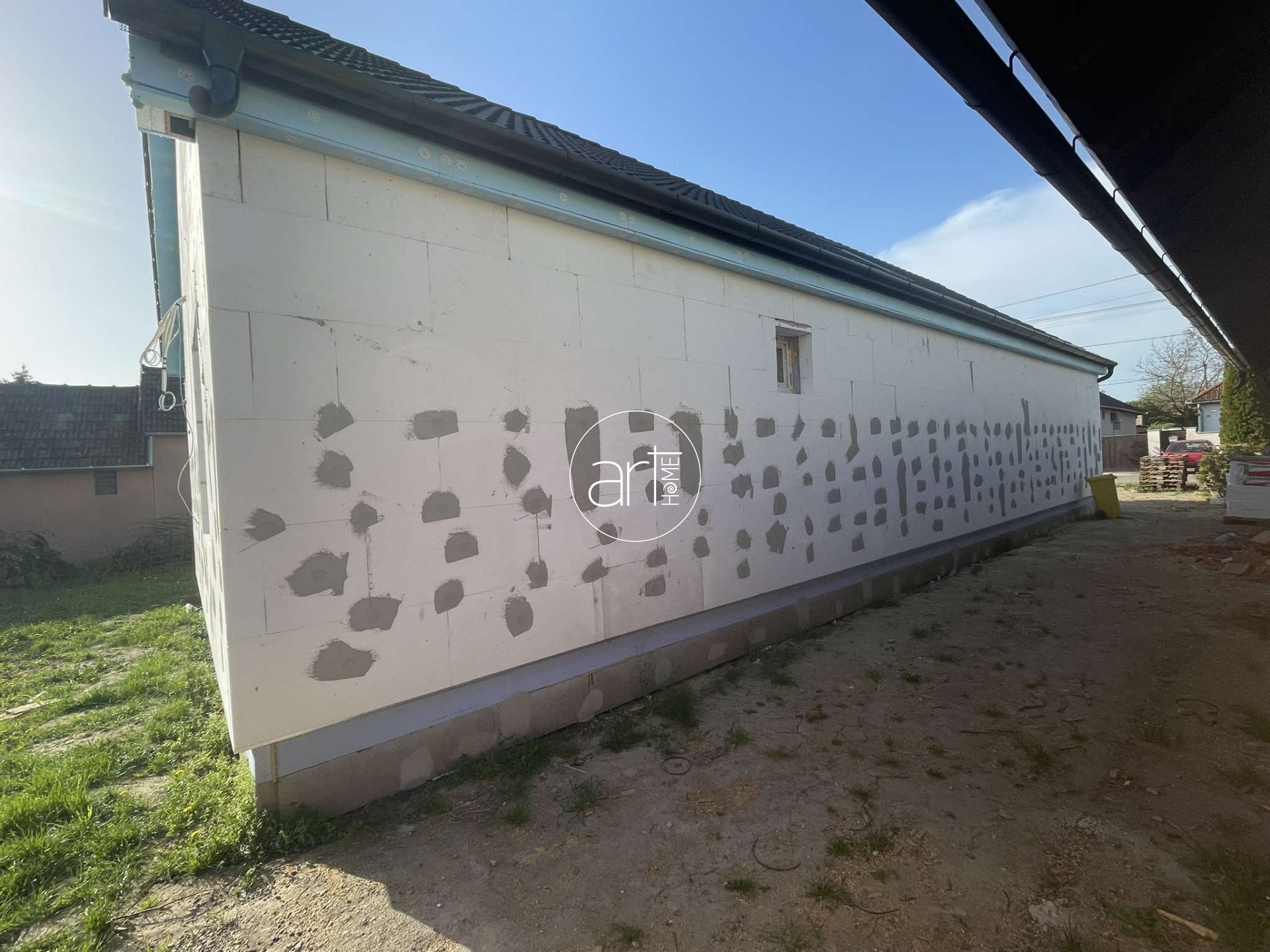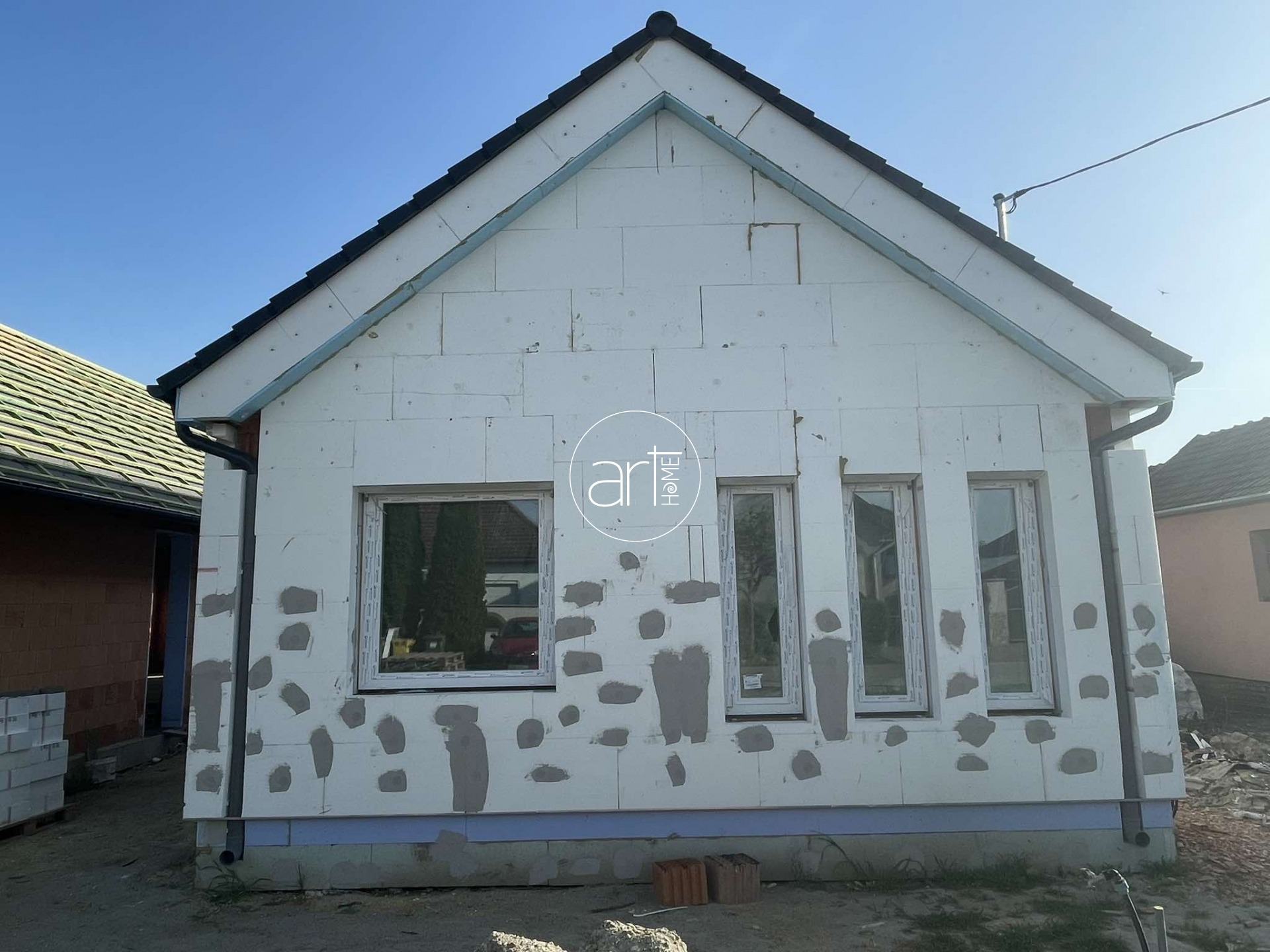 - Falazat: 30 cm tégla + 15 cm hungarocell szigetelés (a válaszfalak gipszkartonból készülnek, de kérésre lehet téglából is)