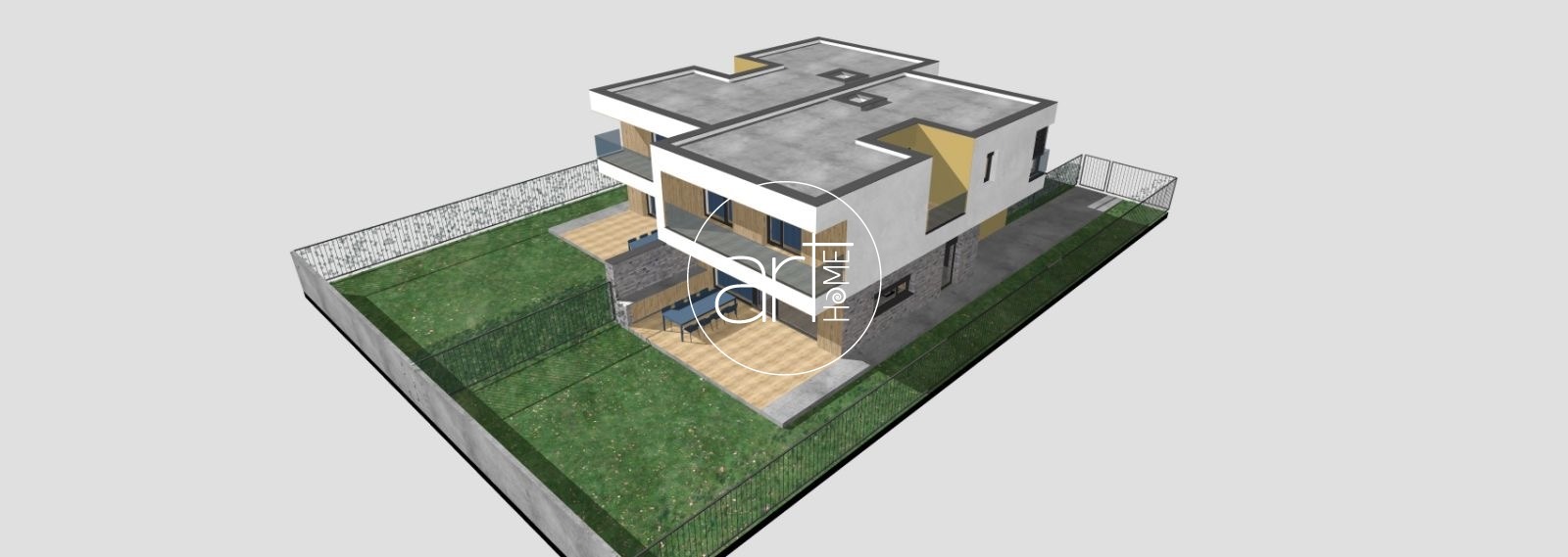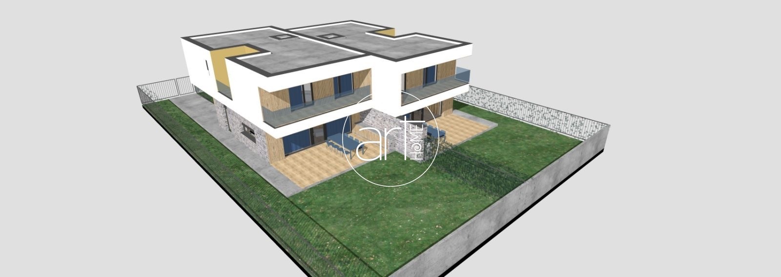 - Két fedett terasz (11,07 m² + 8,06 m²), melyek meghosszabbítják a nappali életteret