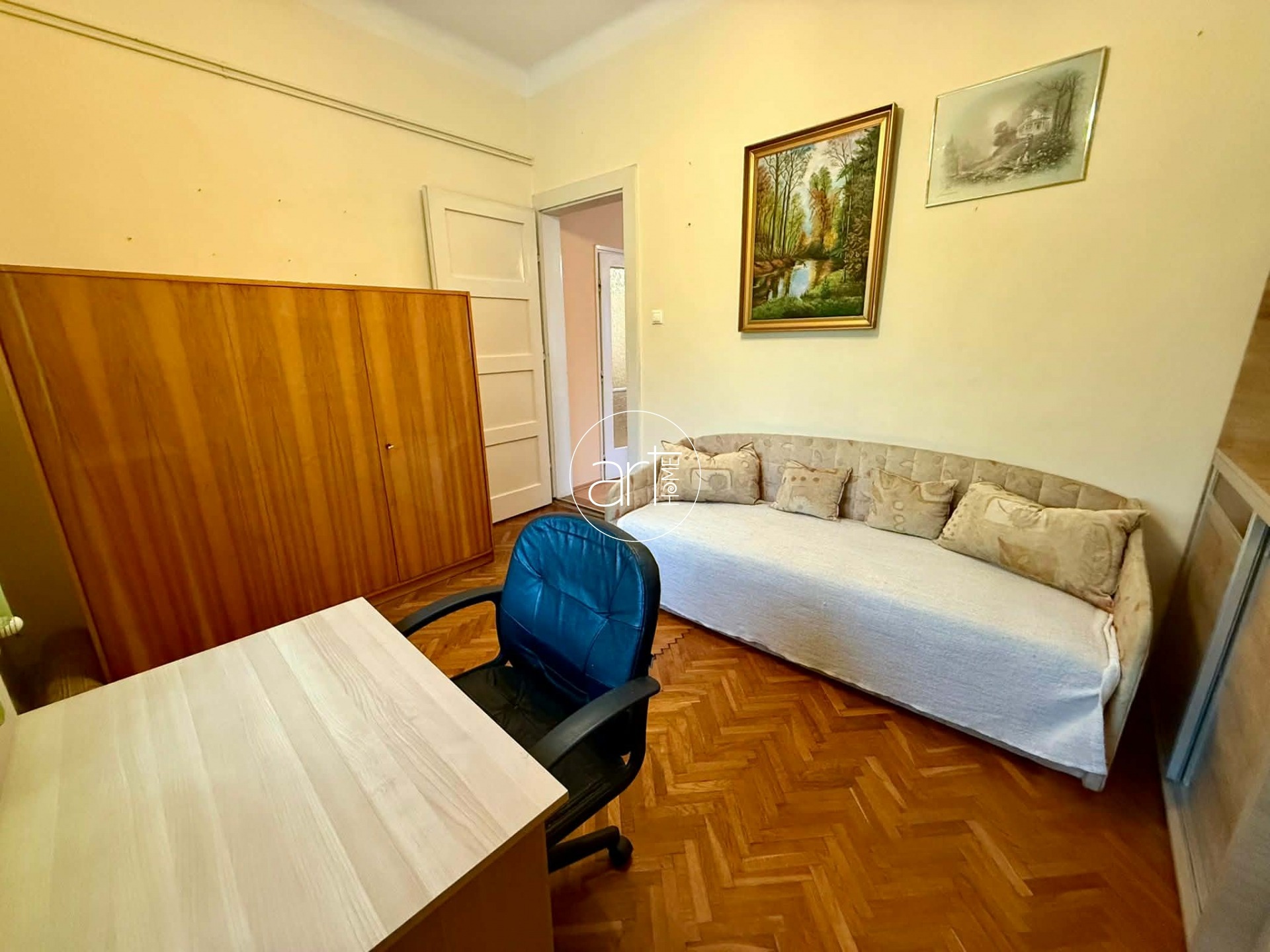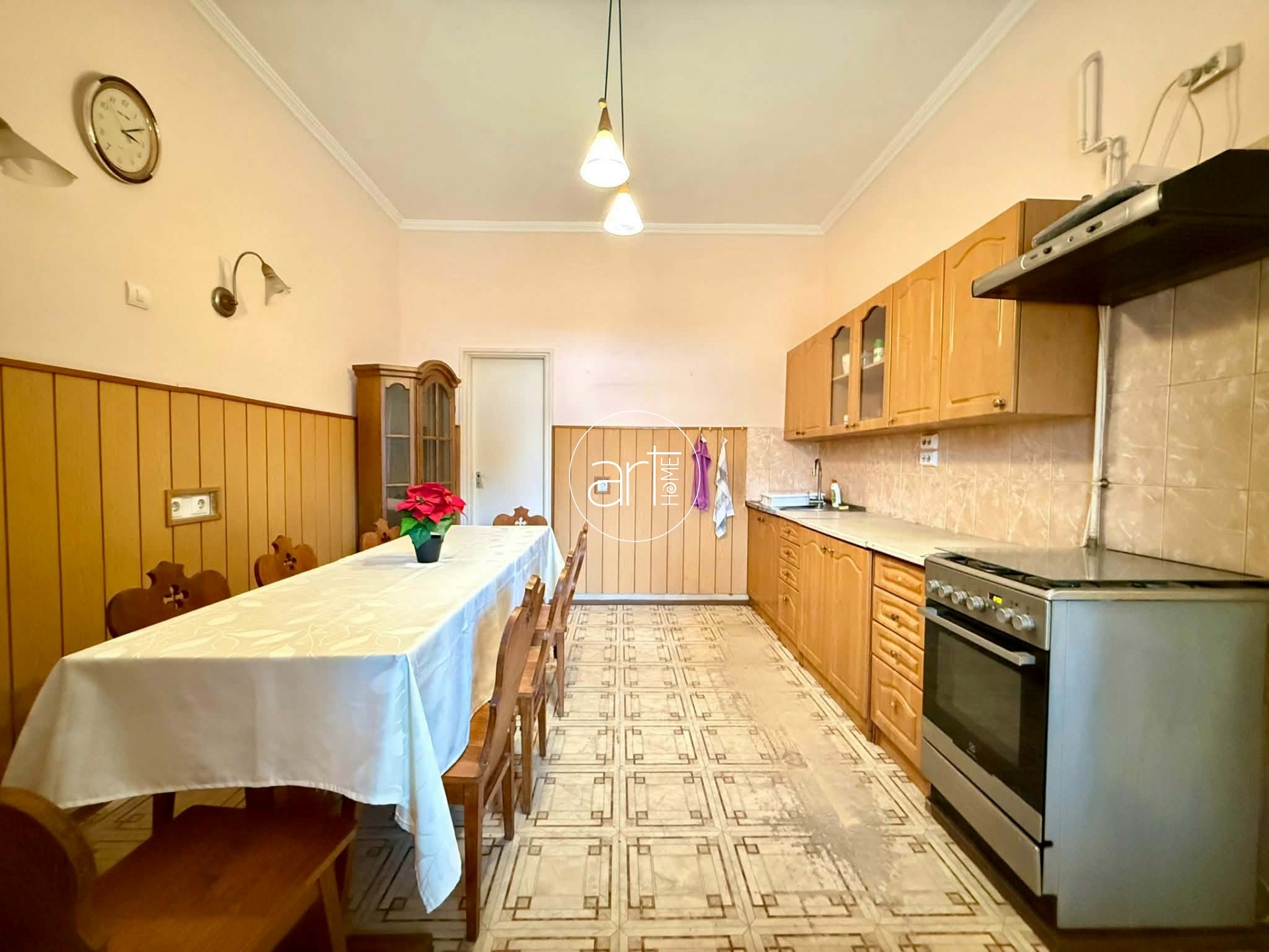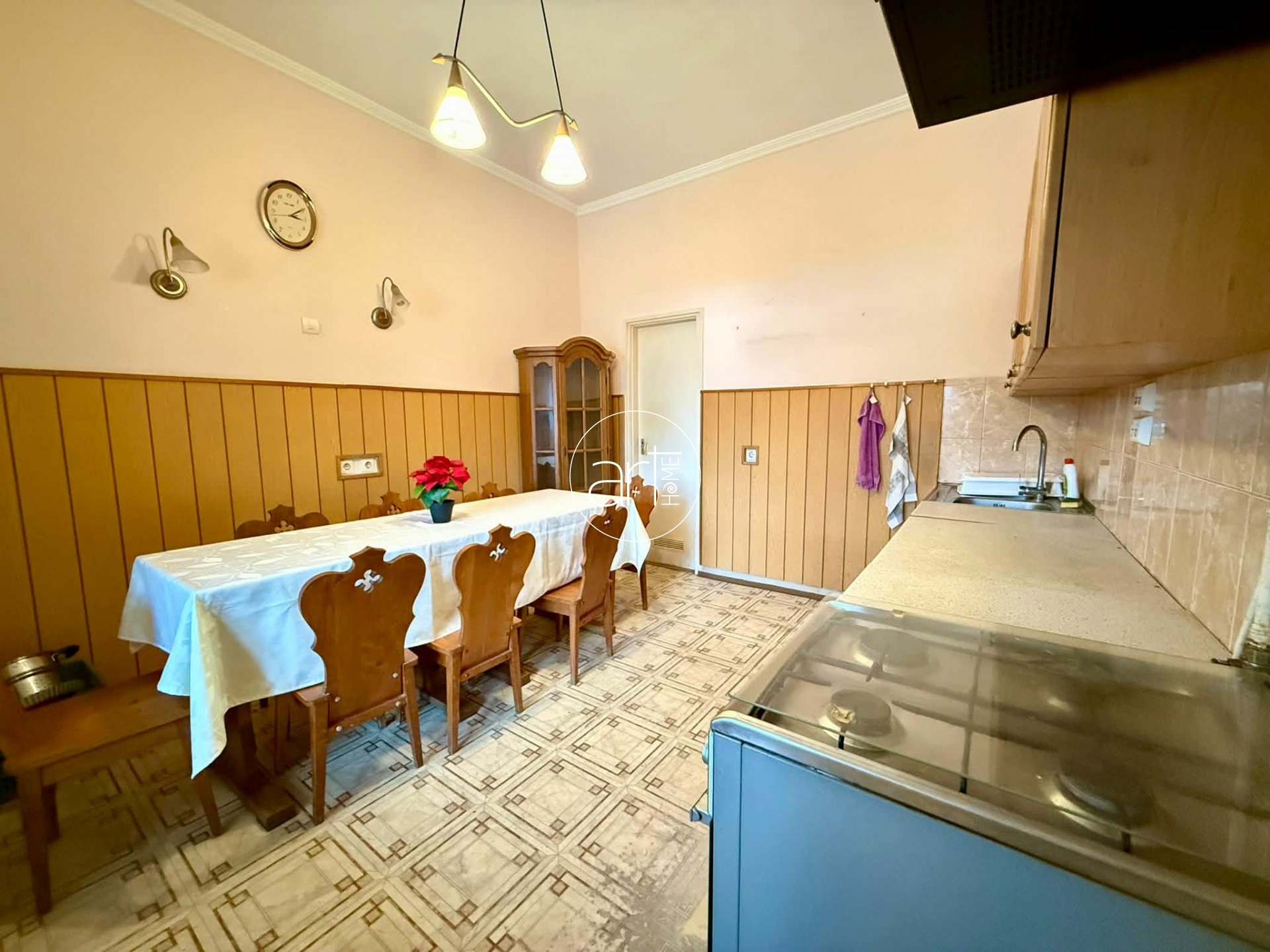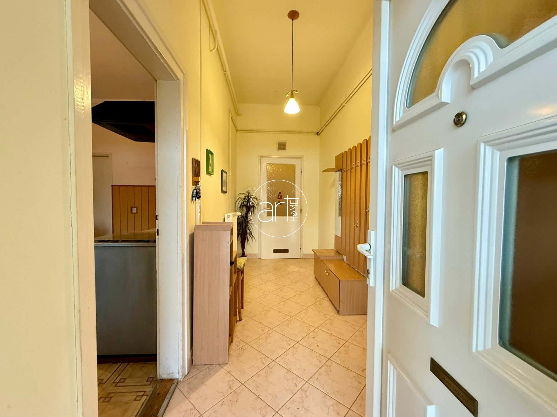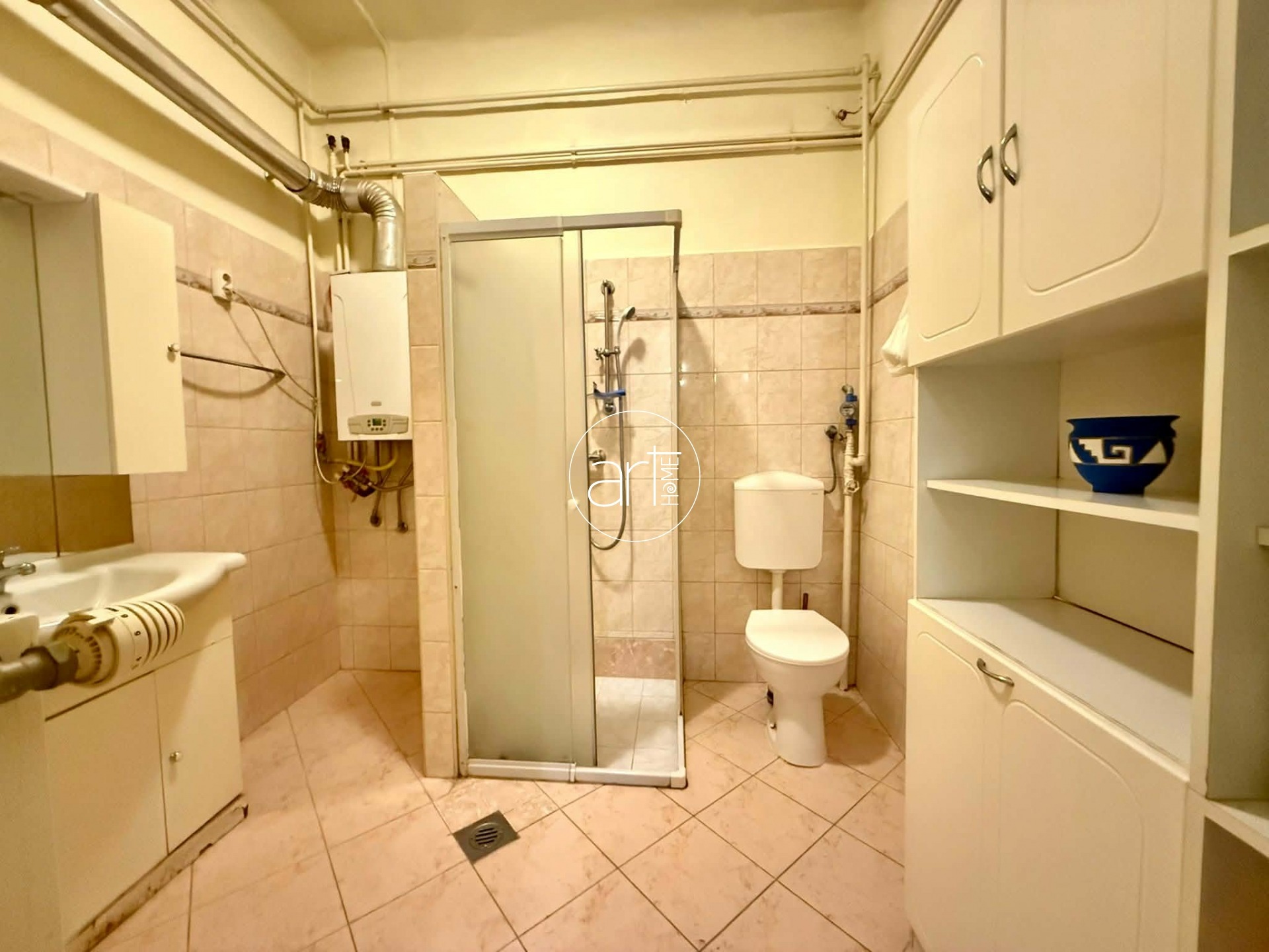 A terek világosak, jó elosztással rendelkezik a lakás, a konyhája hatalmas és tartozik még hozzá egy szintén óriási kamra. A fürdőszobája tusolós, a wc a fürdőszobán kapott helyet.