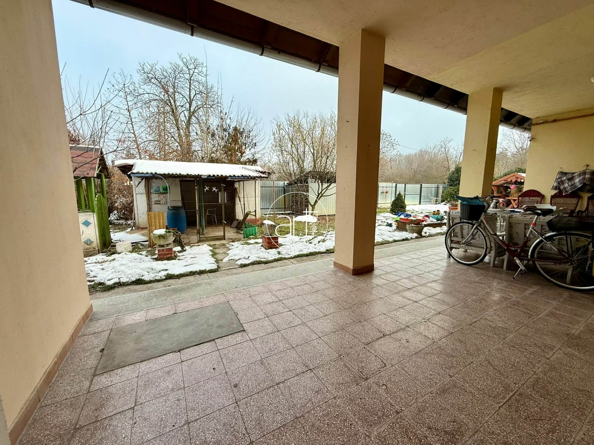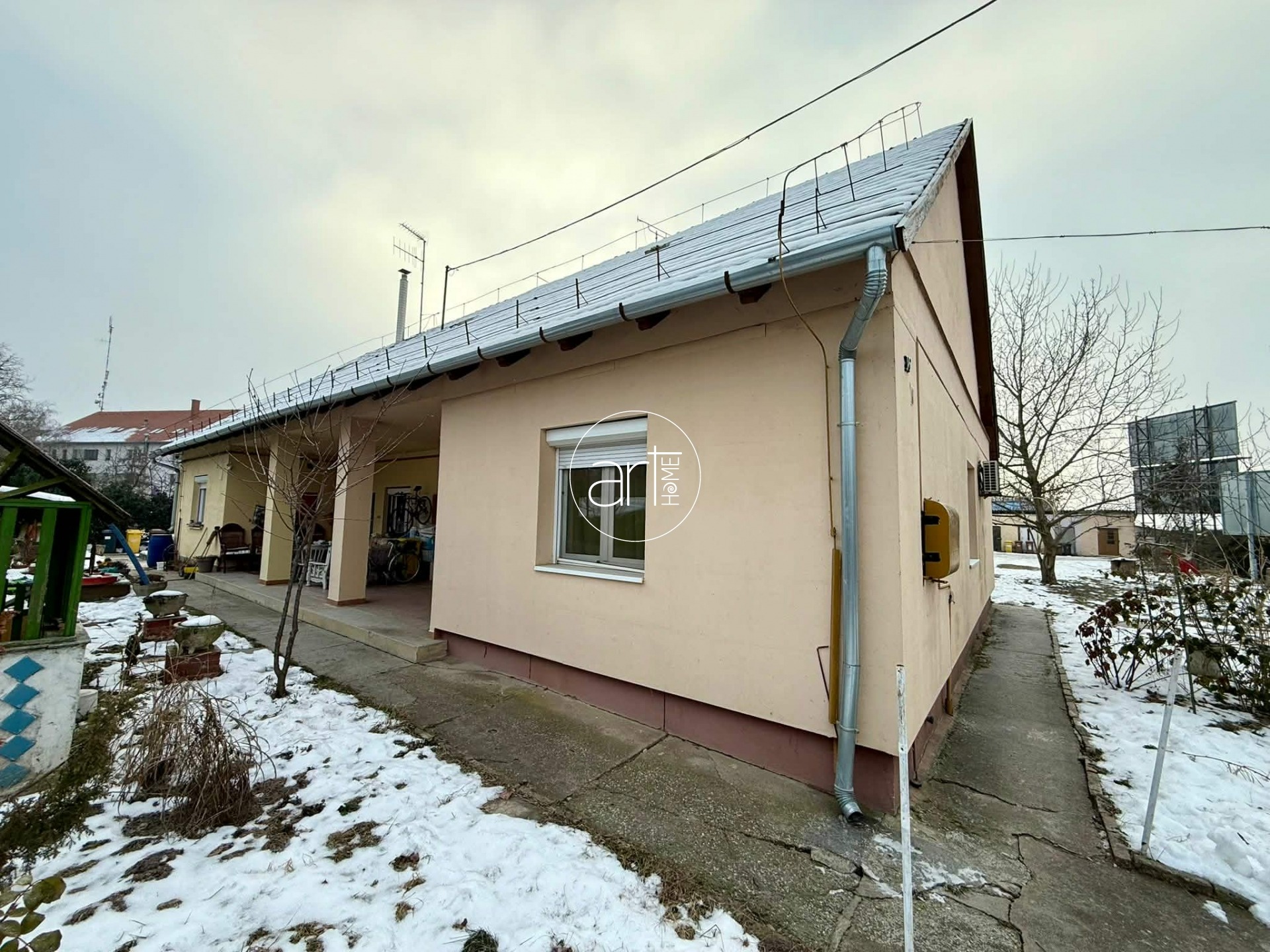 A lakás maga sorházi épületben helyezkedik el, és az elektromos kapuval ellátott, zárt udvaron keresztül megközelíthető. A lakáshoz tartozik még egy nagy, udvari tároló és egy, anno garázsként használt, ma már ugyanúgy tároló funkciót ellátó épület.