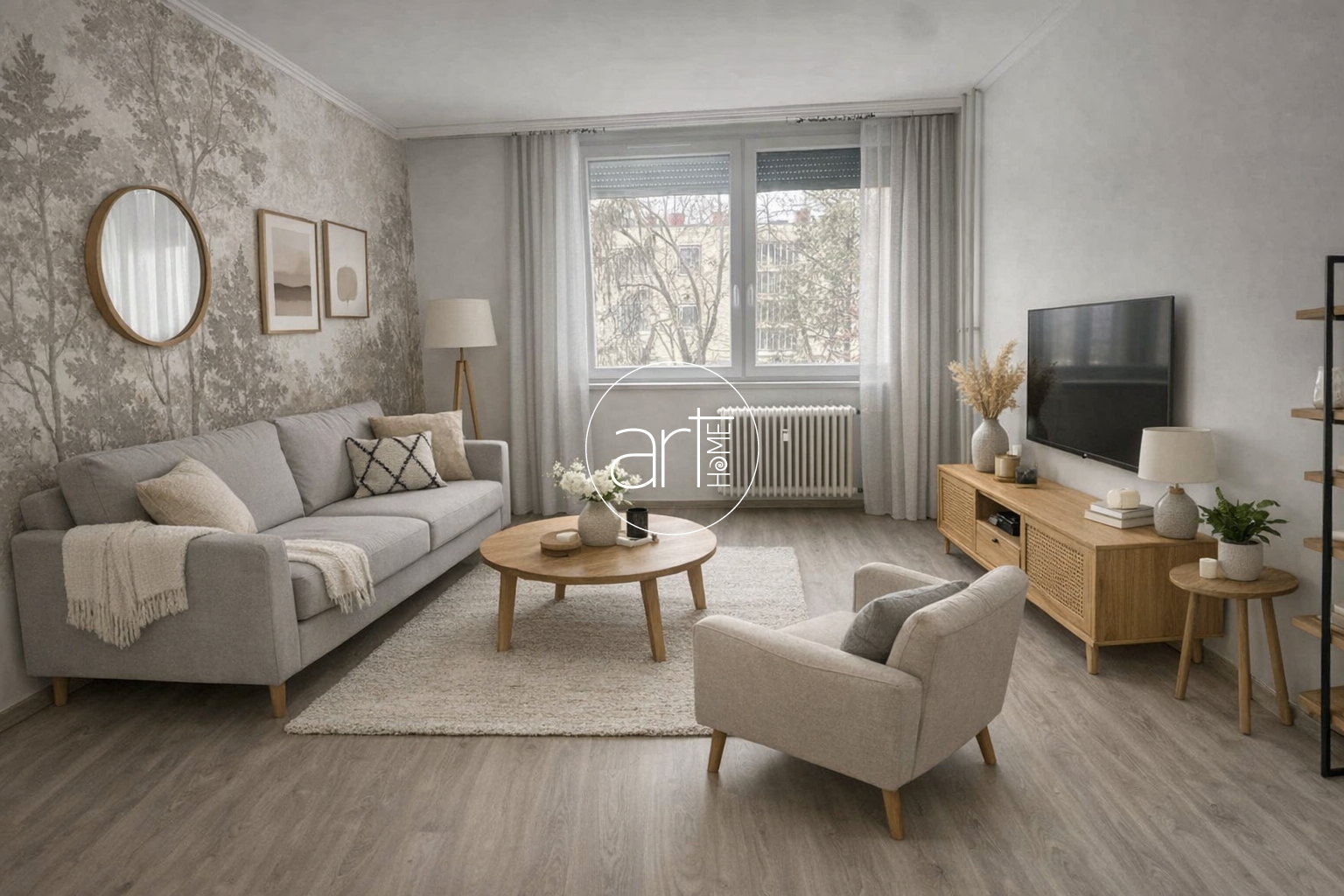 Az 1. képen található berendezés egy skandináv stílusú látványterv, nem a jelenlegi valóság, bár egy kis fantáziával könnyen a Te valóságod is lehet, miután megvásároltad ezt a szépen felújított lakást: