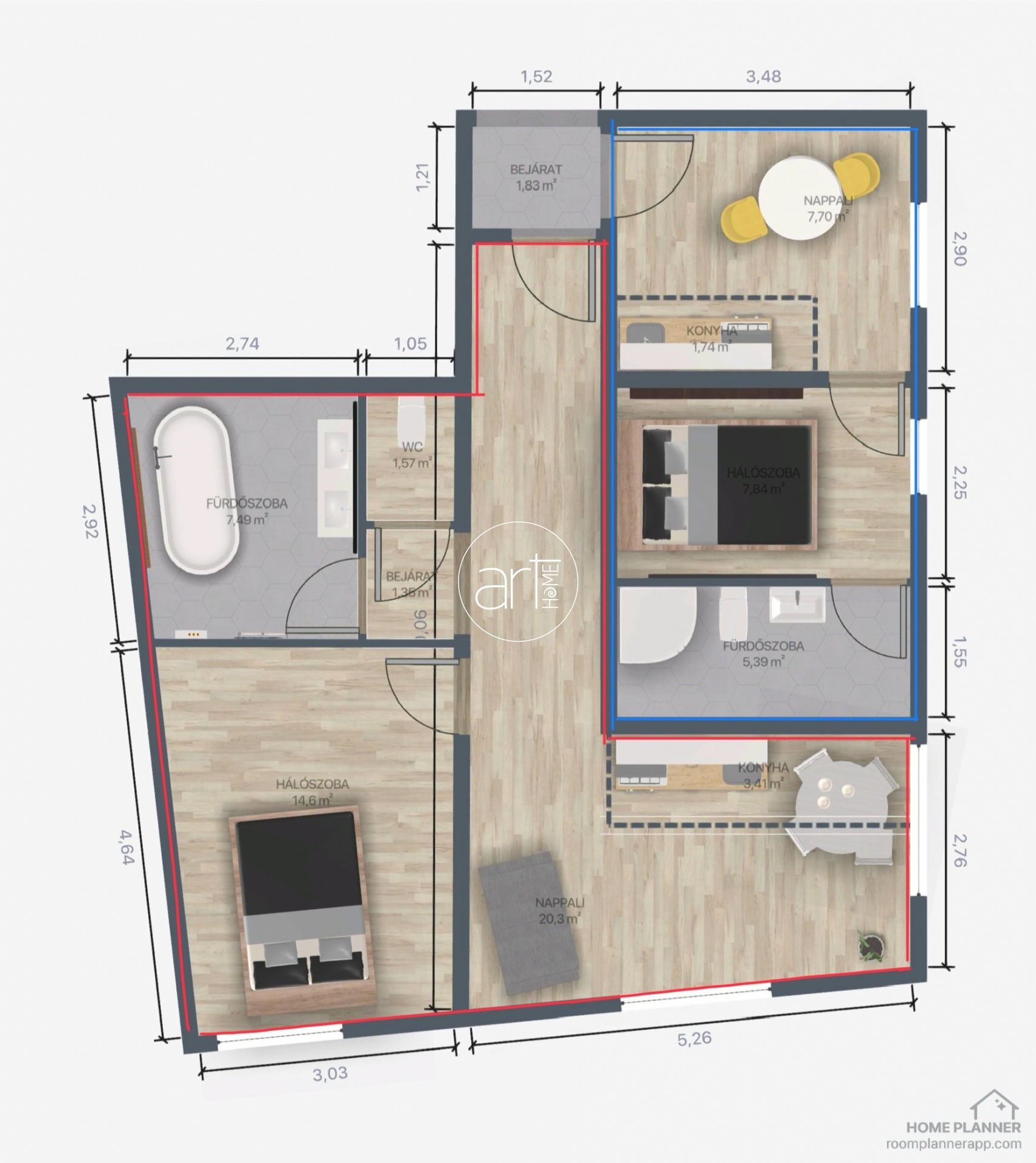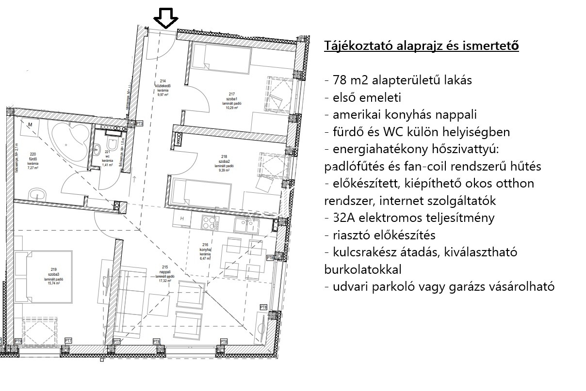 - Fűtés, hűtés és melegvíz-ellátás: Minden lakásban padlófűtés kerül kialakításra, amelyet energiahatékony hőszivattyús rendszer működtet. A hűtés fan -coil rendszerű.