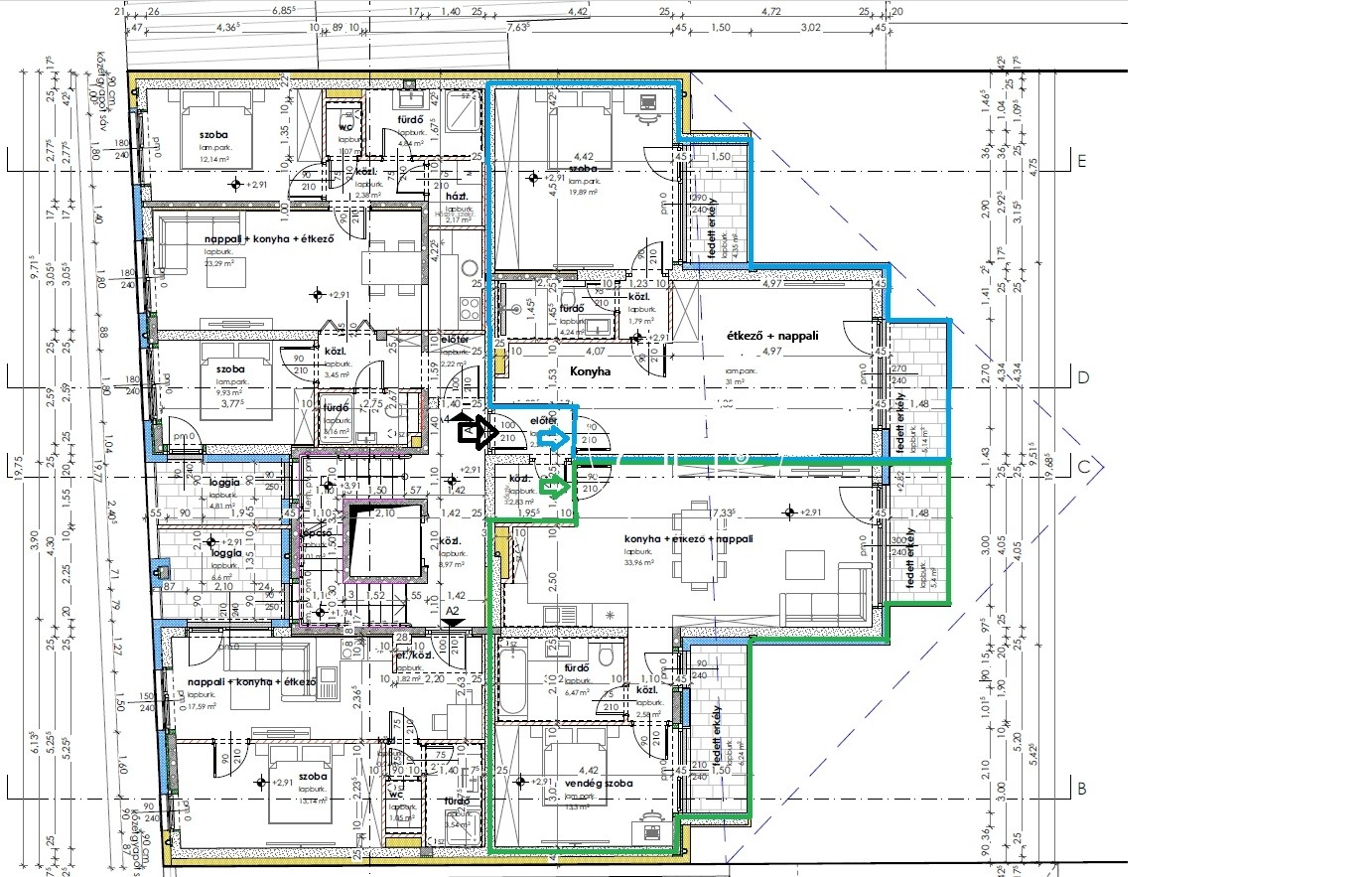 Első emeleti ingatlan, bár a lift, és a terek kialakítása miatt akadálymentesen megközelíthető, akár kerekesszékkel is. Ez a lakás a tér, a fény és a luxus tökéletes harmóniáját kínálja. Egyik különlegessége, hogy két D-K-i fekvésű fedett erkéllyel rendelkezik, amelyeket padlótól plafonig érő üvegportálokon keresztül közelíthetünk meg Ennek köszönhetően a természetes fény egész nap beragyogja a belső tereket. Minden helyiség levegős, tágas: a hálószoba is méretes, akár gardrób kialakítására is van elegendő hely. A méretes amerikai konyhás, nyitott kialakítású nappali pedig kiváló helyszíne a közös pillanatoknak és vendéglátásnak. U-alakú konyha kialakítása nagyon praktikussá teszi a használatát.
