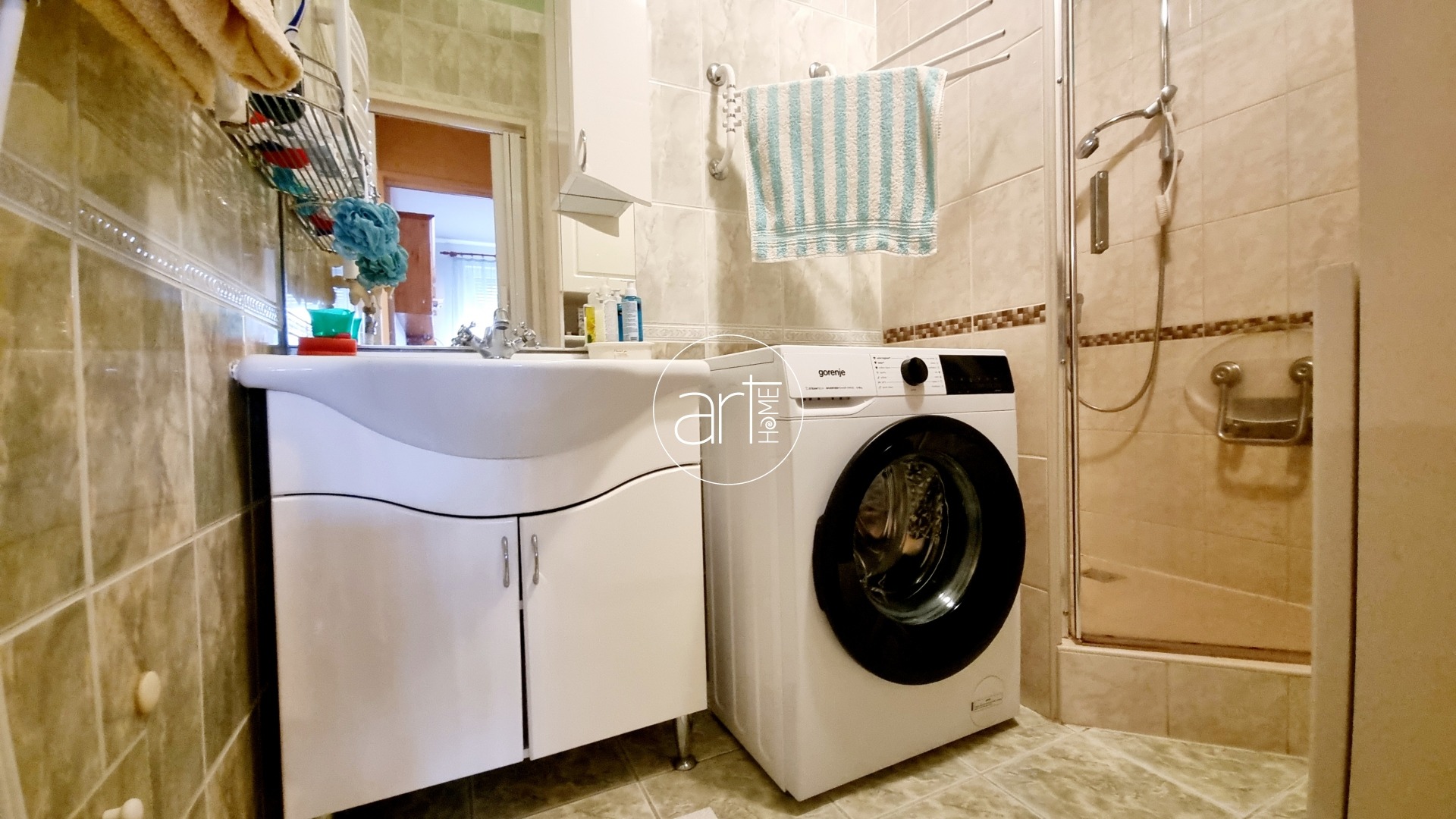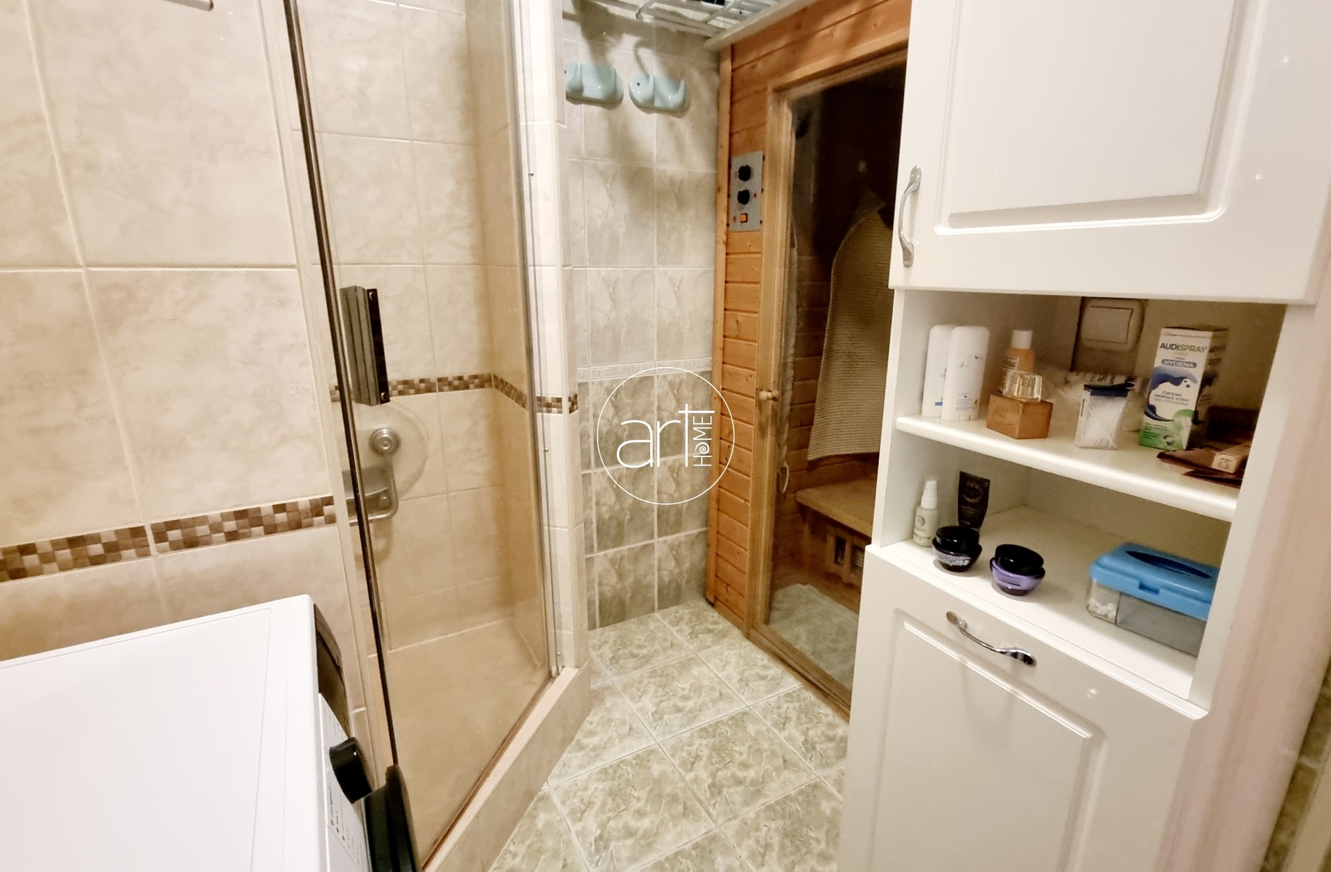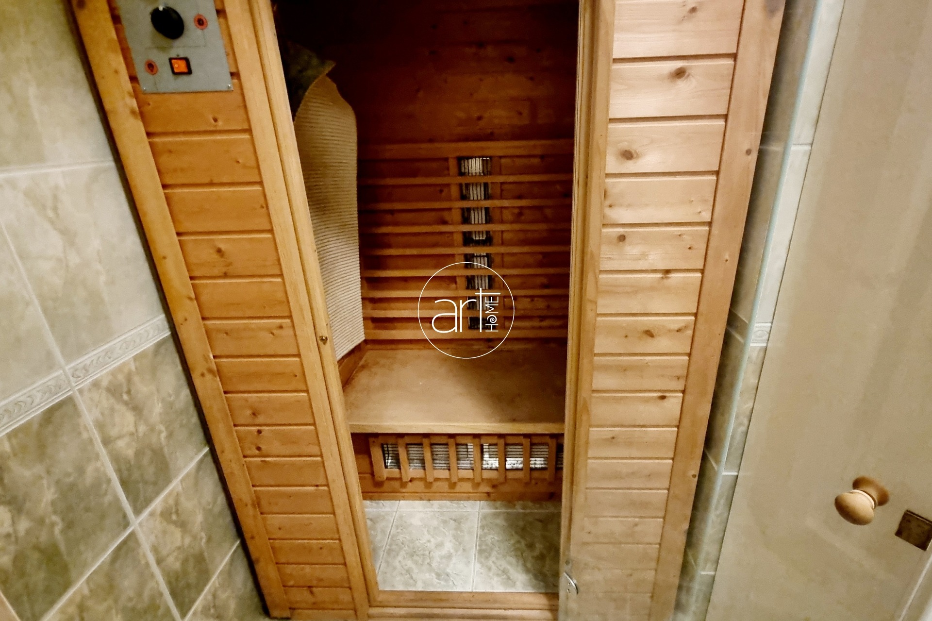 A fürdőszobában beépített tusoló van és az ár részét képezi egy infraszauna is.