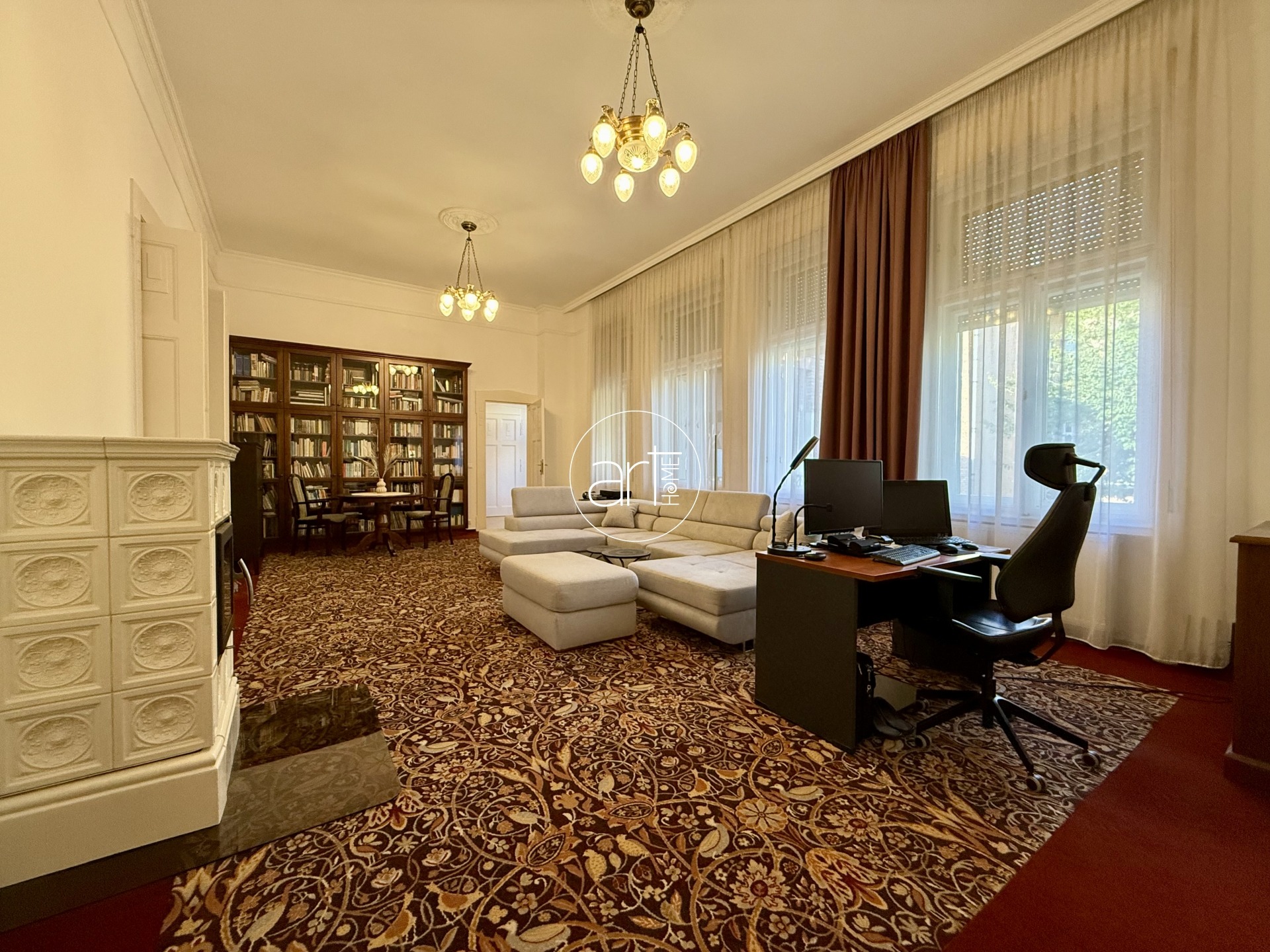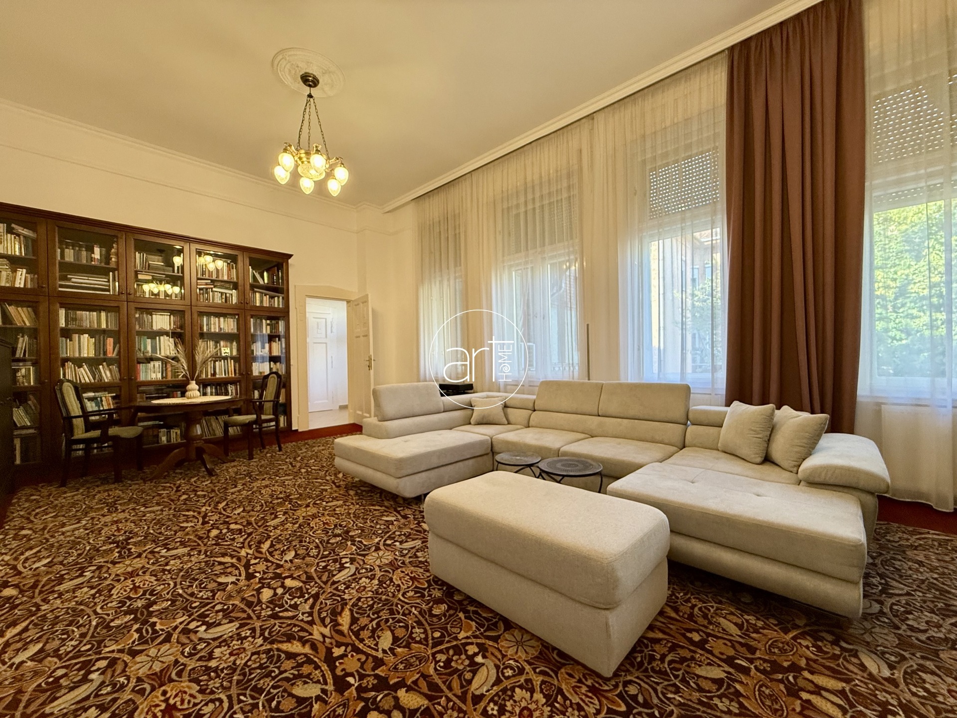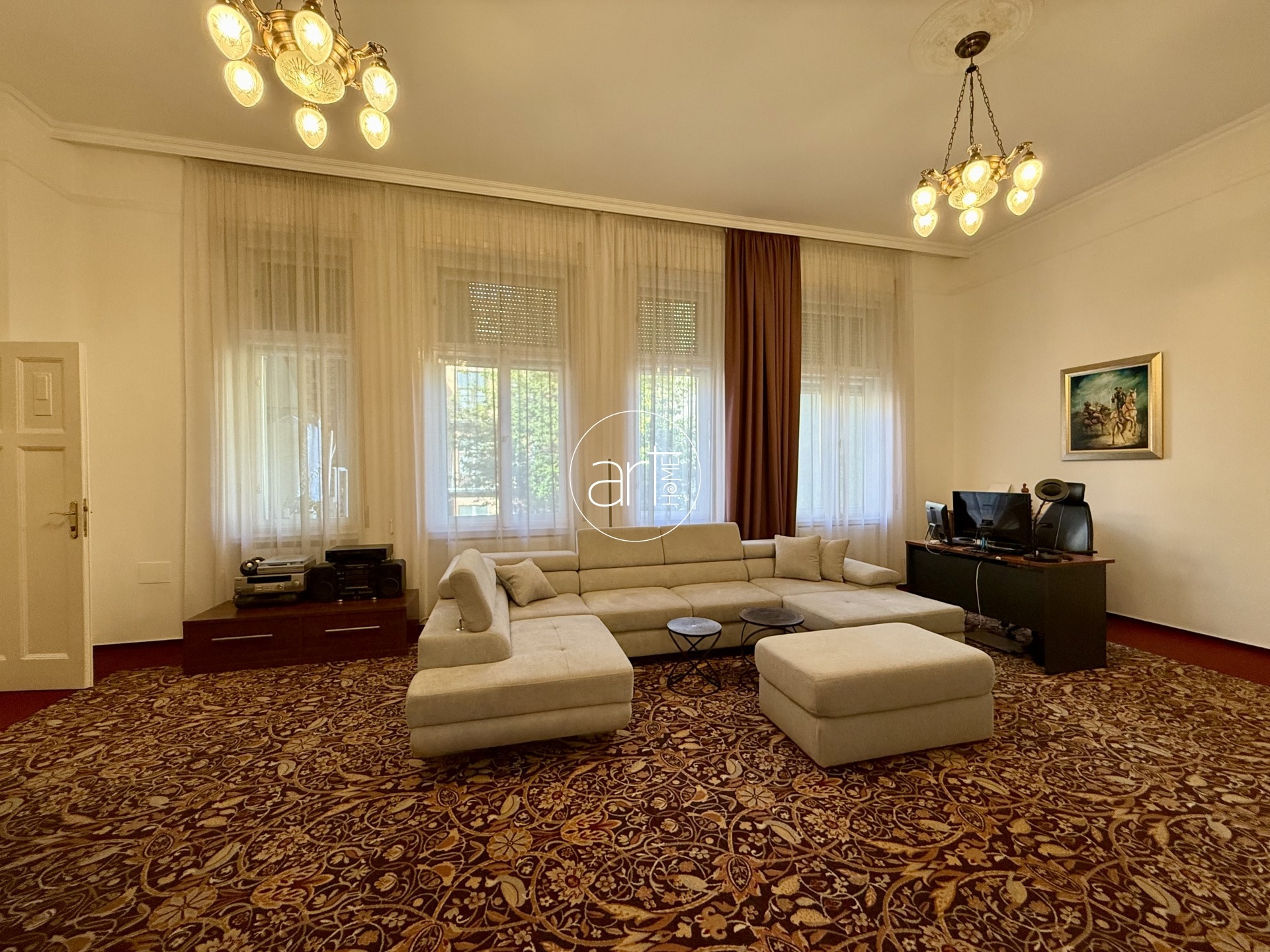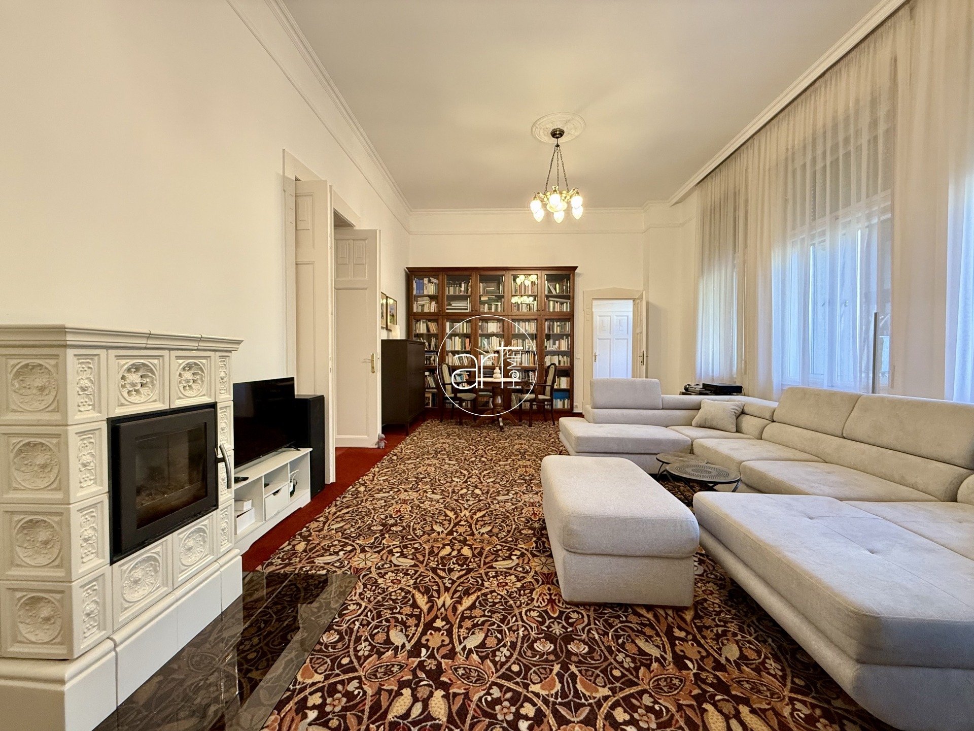A lakás hangulatát antikolt csillárok és az egyedi holland padlószőnyeg adja, melynek mintája a lakás teljes, közel 19 méteres hosszán végigfut. A nappaliban 9 kW-os látványkandalló szolgálja a hangulatot és a komfortot. A tulajdonos minden eredeti ornamentikát (rozetták, stukkók, shildek, takarólécek) megőrzött vagy hitelesen helyreállított.