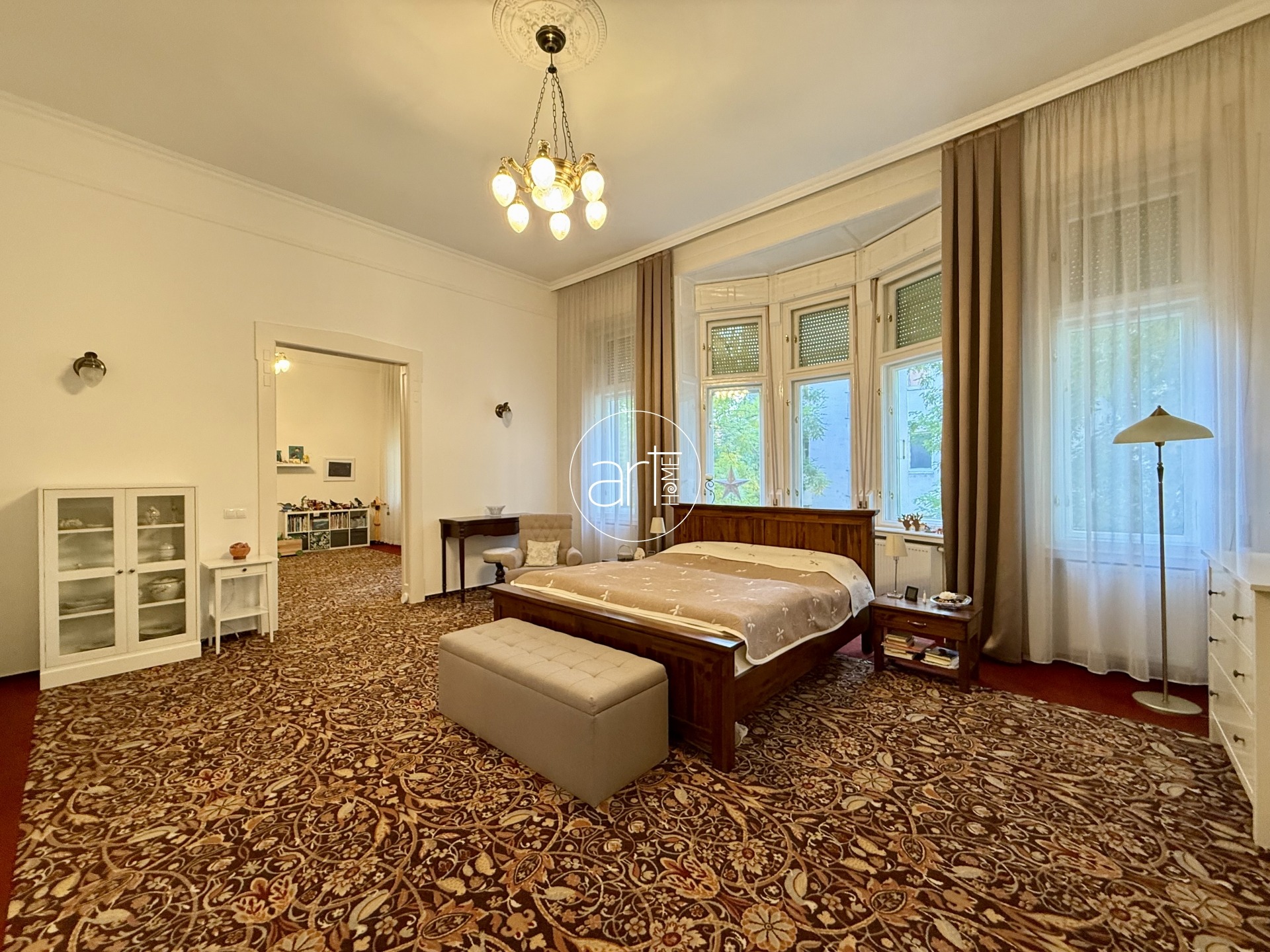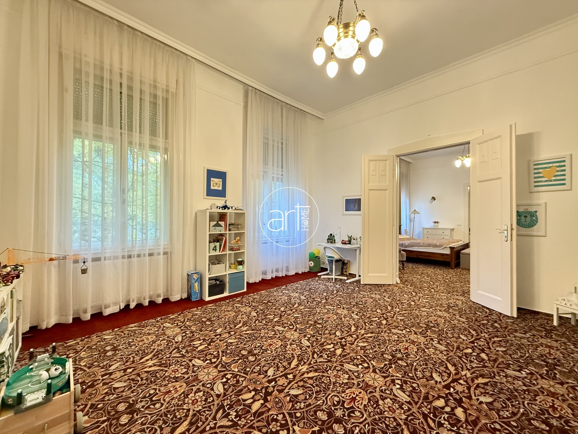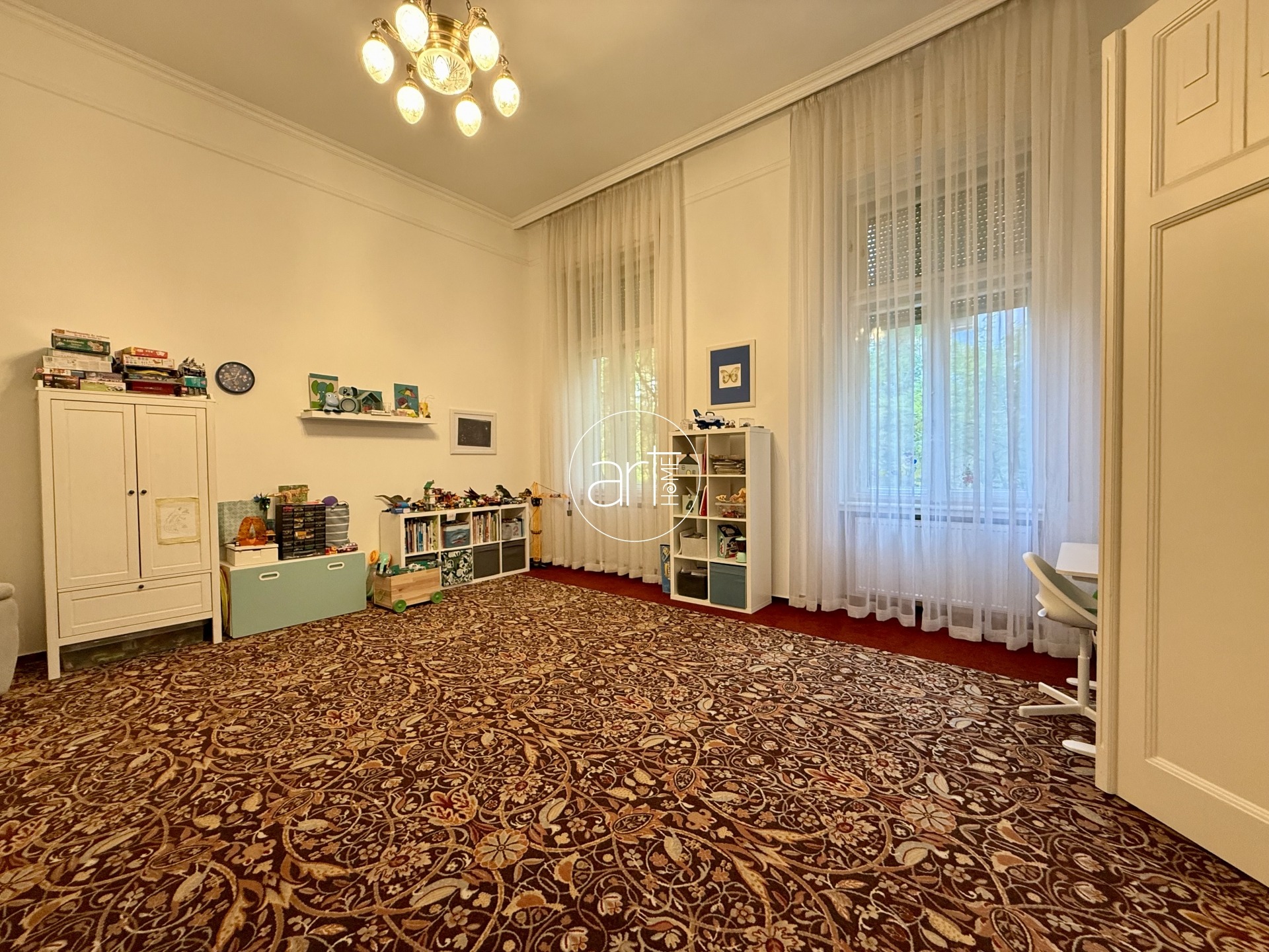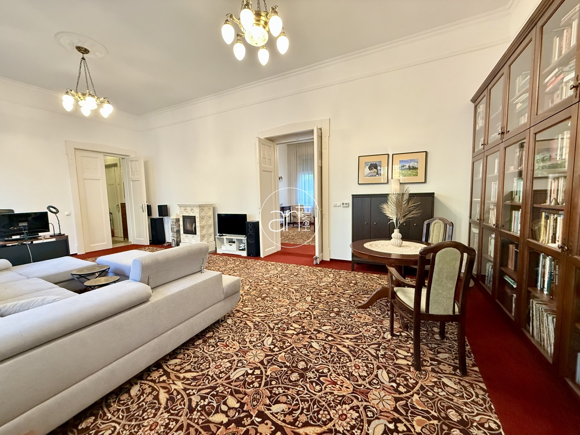 A lakás hangulatát antikolt csillárok és az egyedi holland padlószőnyeg adja, melynek mintája a lakás teljes, közel 19 méteres hosszán végigfut. A nappaliban 9 kW-os látványkandalló szolgálja a hangulatot és a komfortot. A tulajdonos minden eredeti ornamentikát (rozetták, stukkók, shildek, takarólécek) megőrzött vagy hitelesen helyreállított.