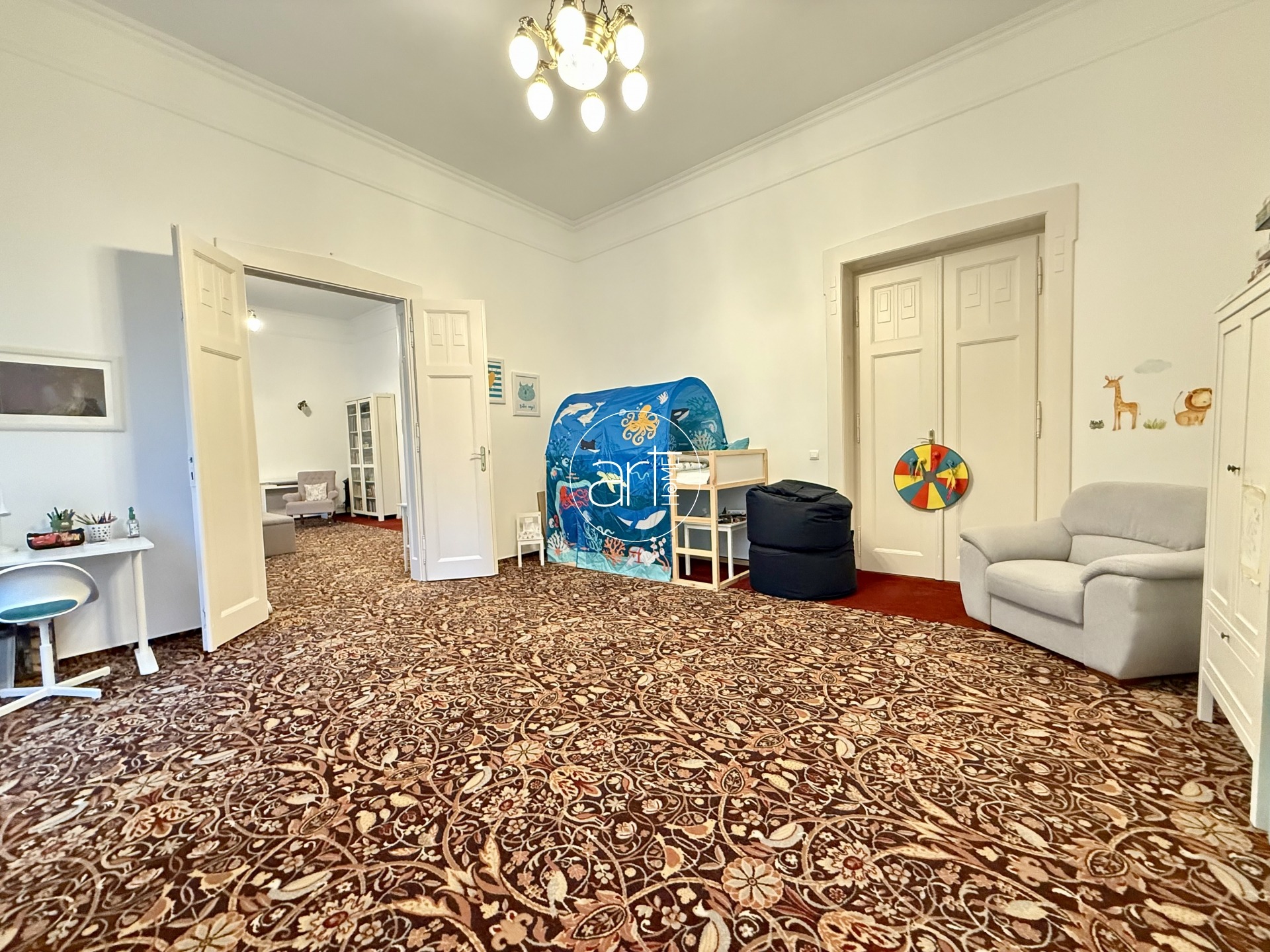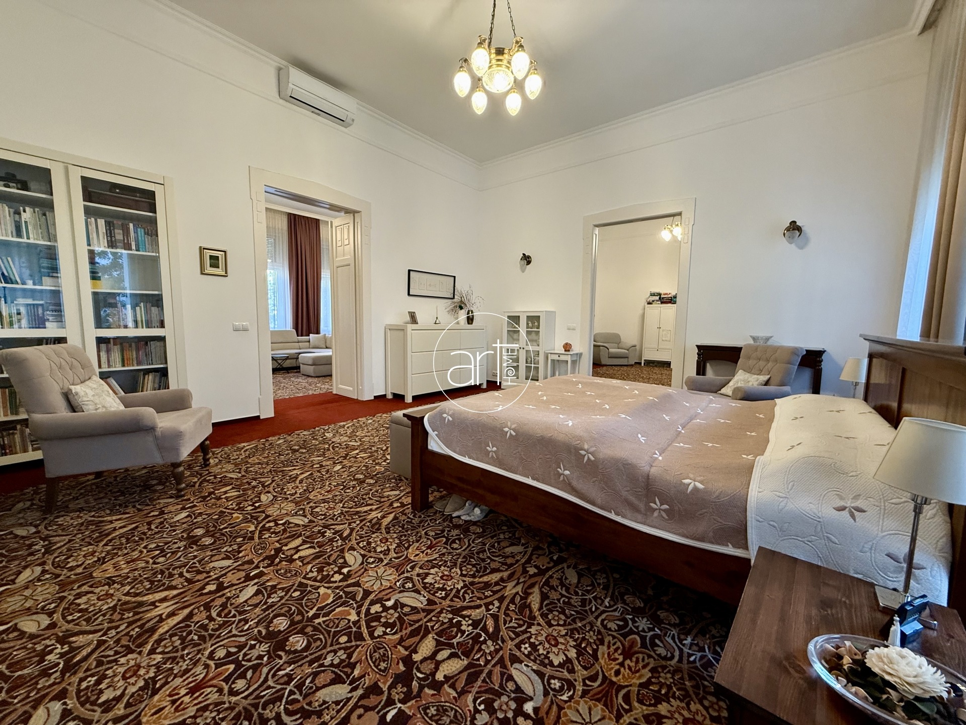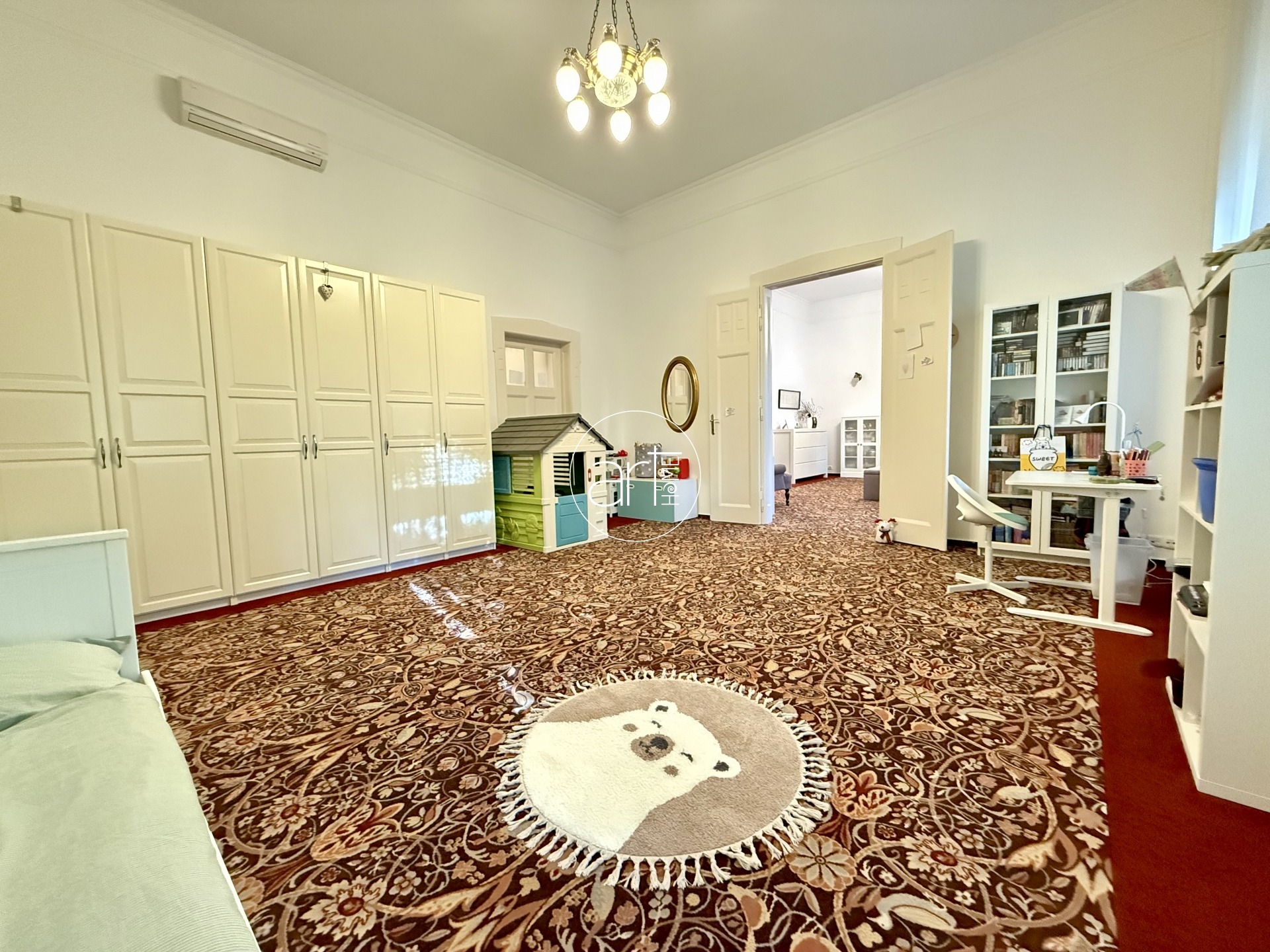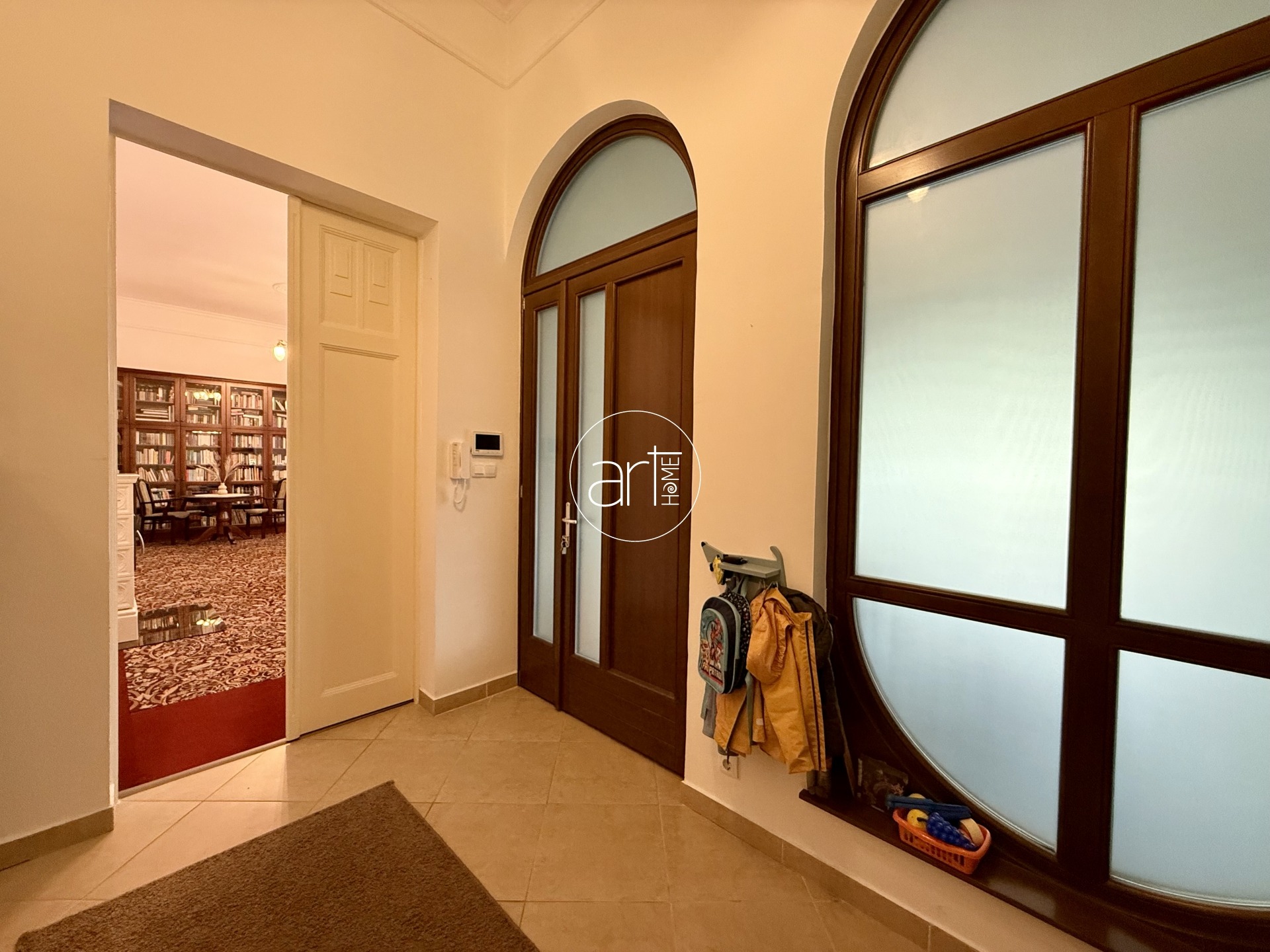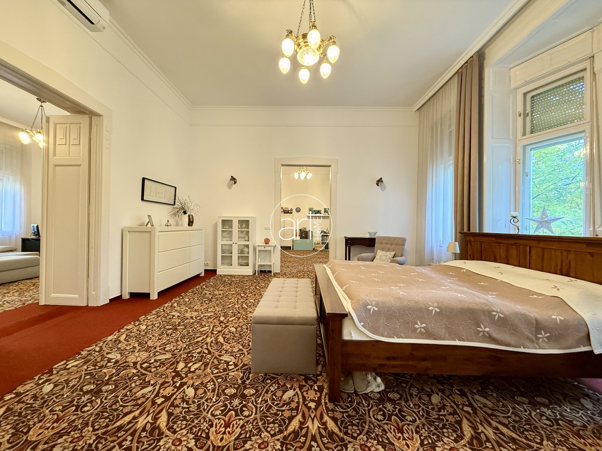 A lakás hangulatát antikolt csillárok és az egyedi holland padlószőnyeg adja, melynek mintája a lakás teljes, közel 19 méteres hosszán végigfut. A nappaliban 9 kW-os látványkandalló szolgálja a hangulatot és a komfortot. A tulajdonos minden eredeti ornamentikát (rozetták, stukkók, shildek, takarólécek) megőrzött vagy hitelesen helyreállított.