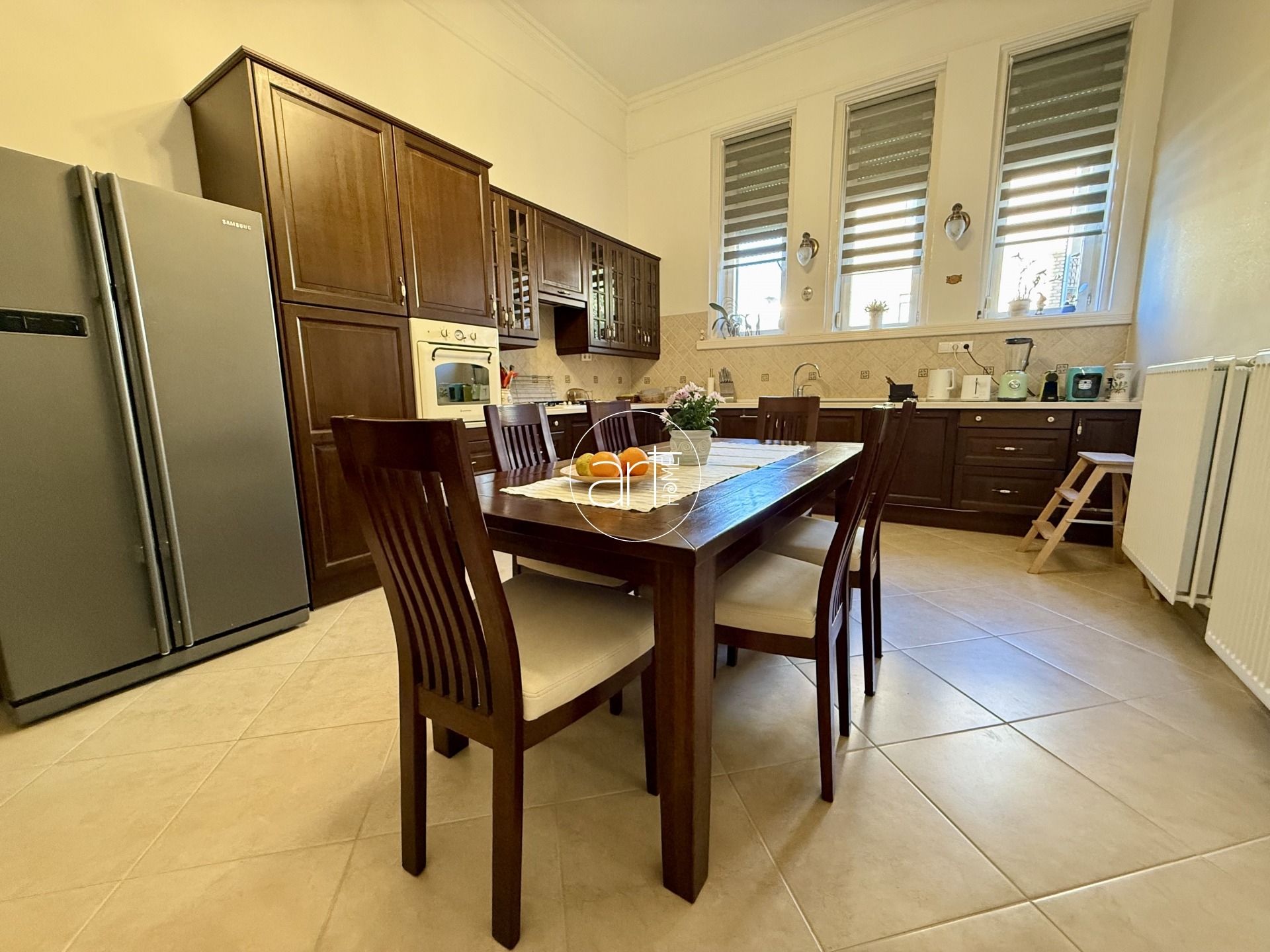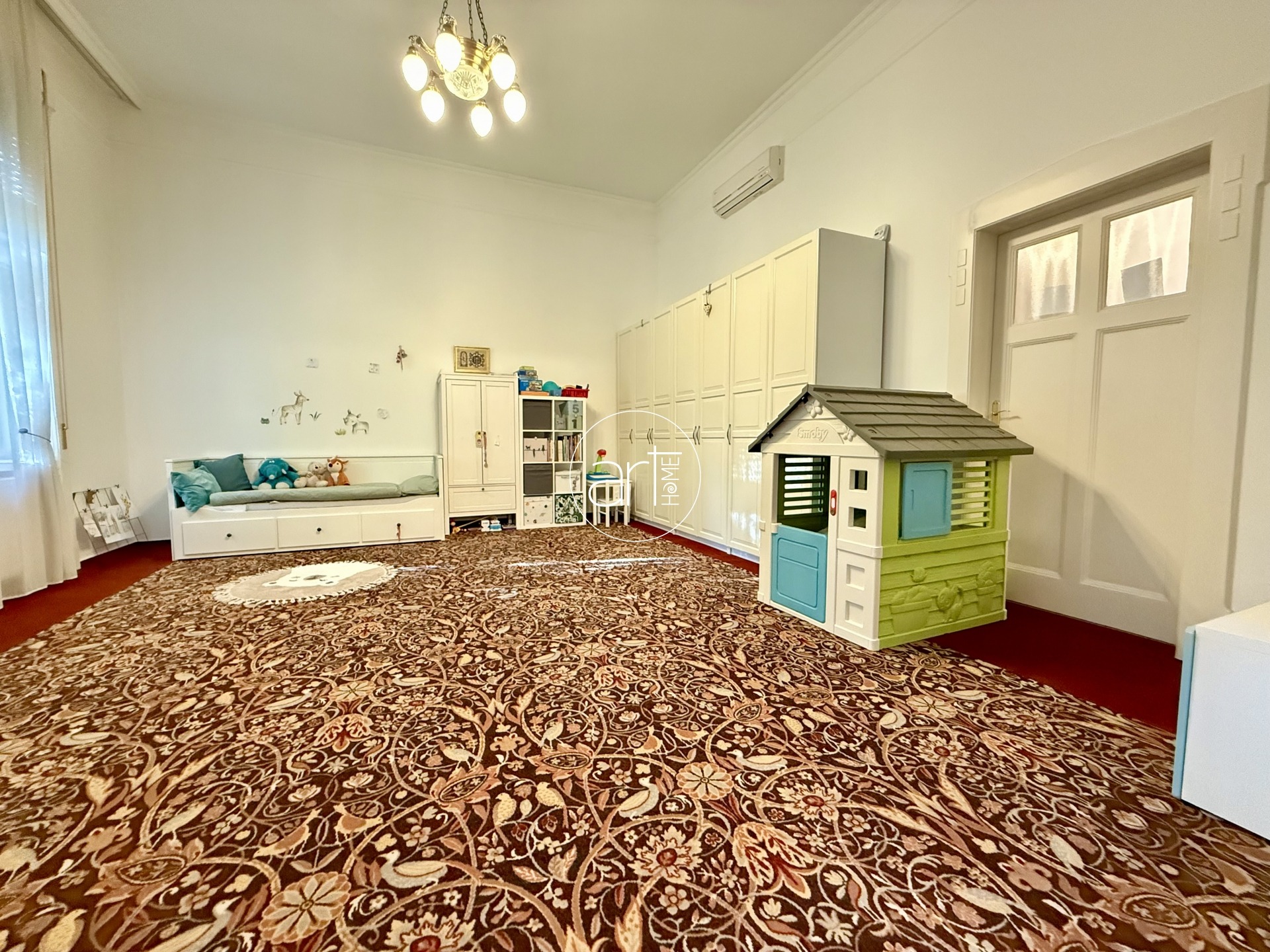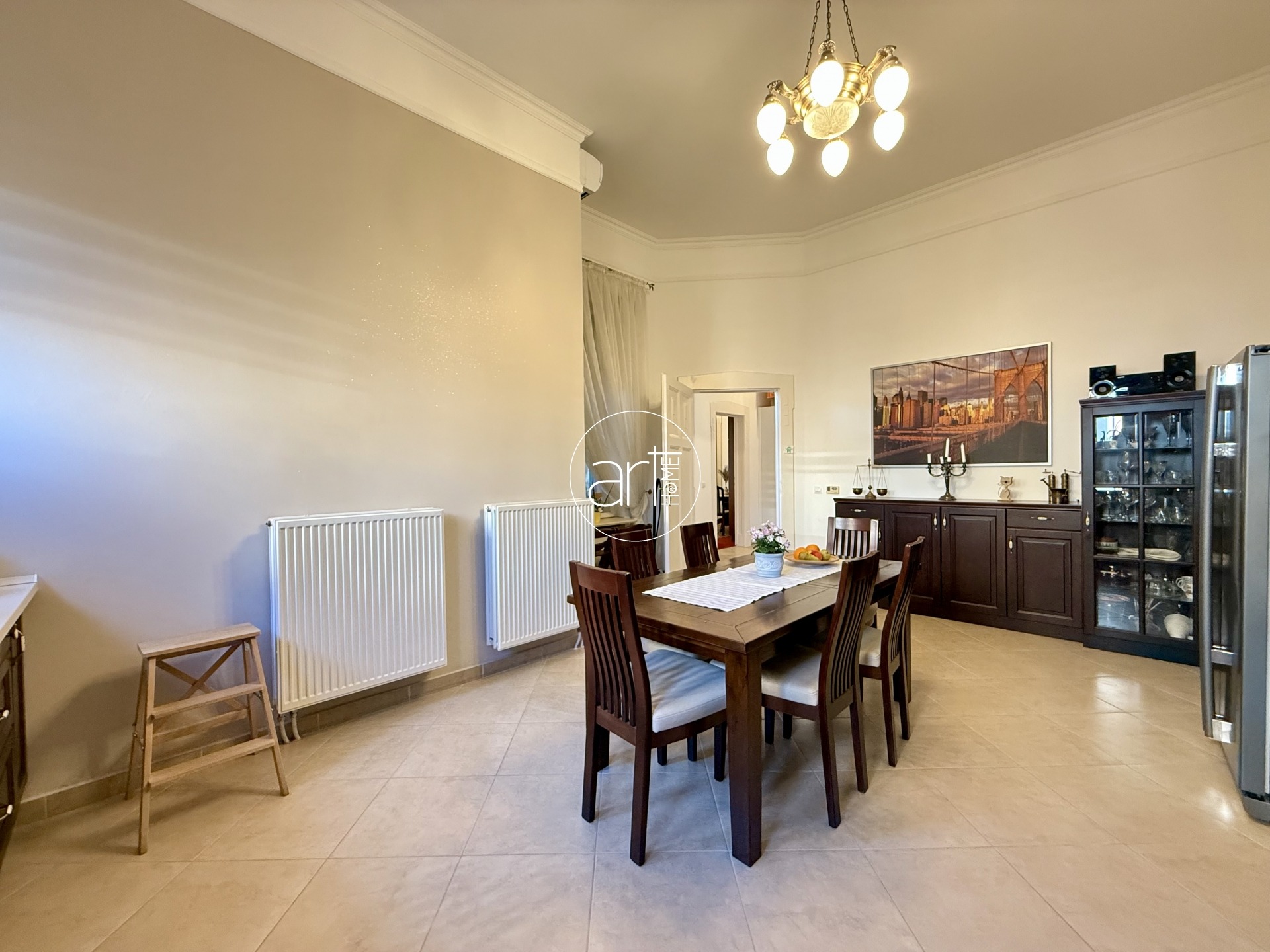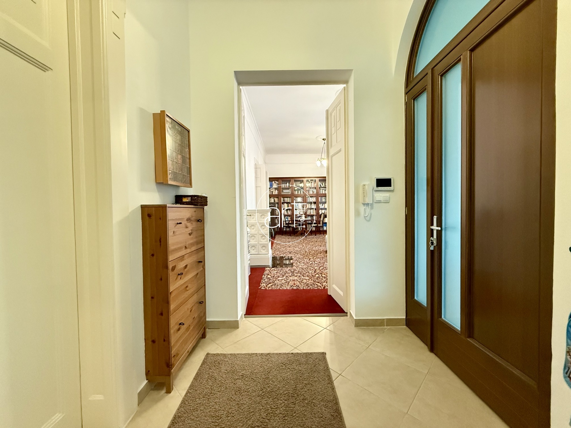 A lakás hangulatát antikolt csillárok és az egyedi holland padlószőnyeg adja, melynek mintája a lakás teljes, közel 19 méteres hosszán végigfut. A nappaliban 9 kW-os látványkandalló szolgálja a hangulatot és a komfortot. A tulajdonos minden eredeti ornamentikát (rozetták, stukkók, shildek, takarólécek) megőrzött vagy hitelesen helyreállított.
