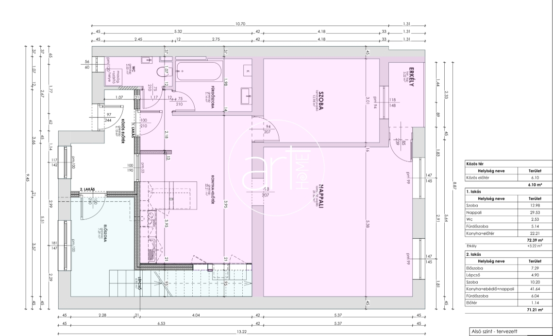 - mindkét lakás külön helyrajzi számmal rendelkezik, önállóan forgalomképes