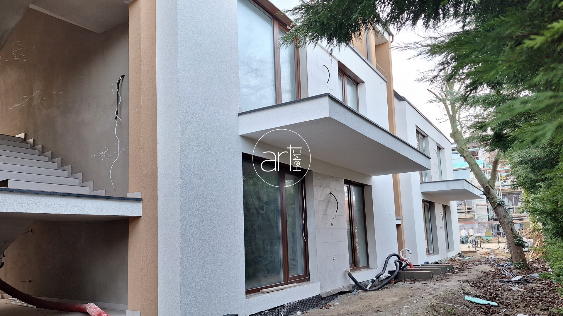 - Homlokzati nyílászárók: REHAU SYNEGO "A" kategóriás profilrendszer, 3 rétegű üveg (hőszigetelt és zajcsillapító), beépített redőnydobozokkal, elektromos előkészítéssel kábelezve, lefutók és szúnyoghálók nélkül.
