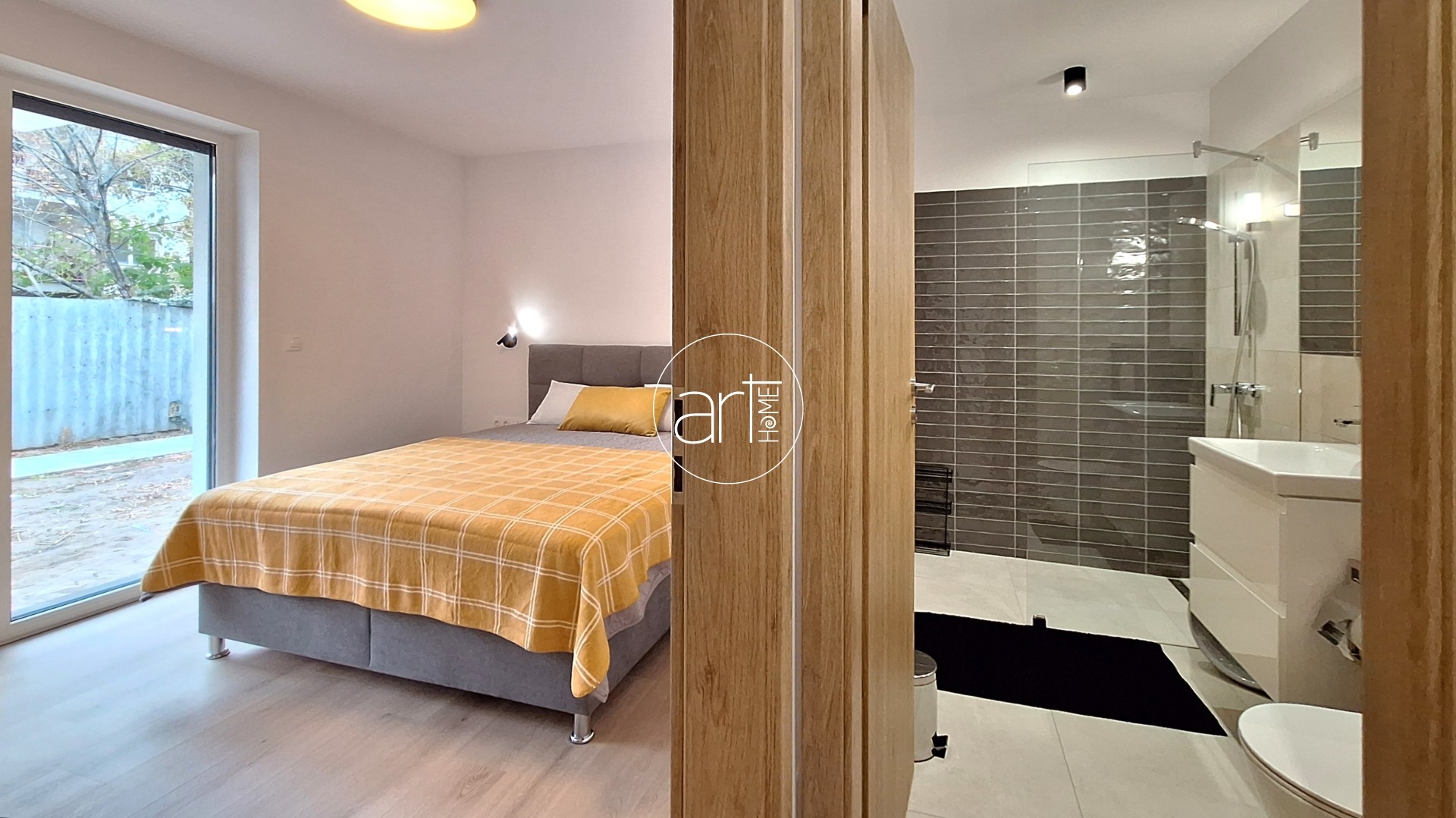 A központi, egybenyitott élettér mellé egy privát, kuckós, modern hálószoba került kialakításra. A fürdőszoba szaniterrel szerelve készül el, a konyha beépítése az új tulajdonos feladata lesz. Tér-tervezéssel, és bútorok kivitelezésével a beköltözésig tudjuk támogatni igény esetén.