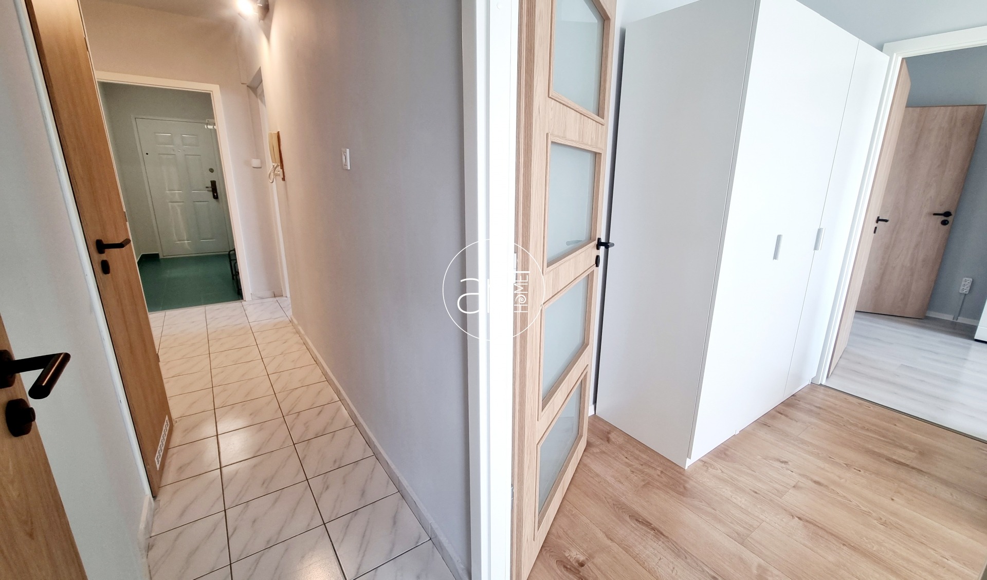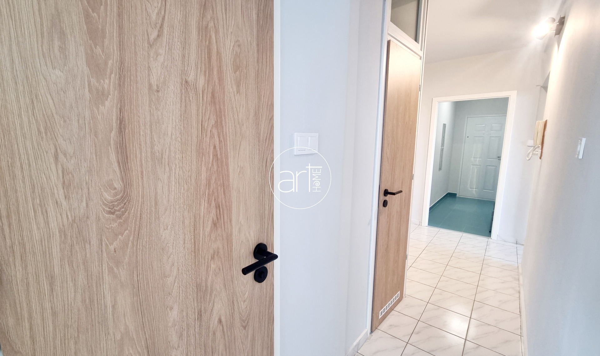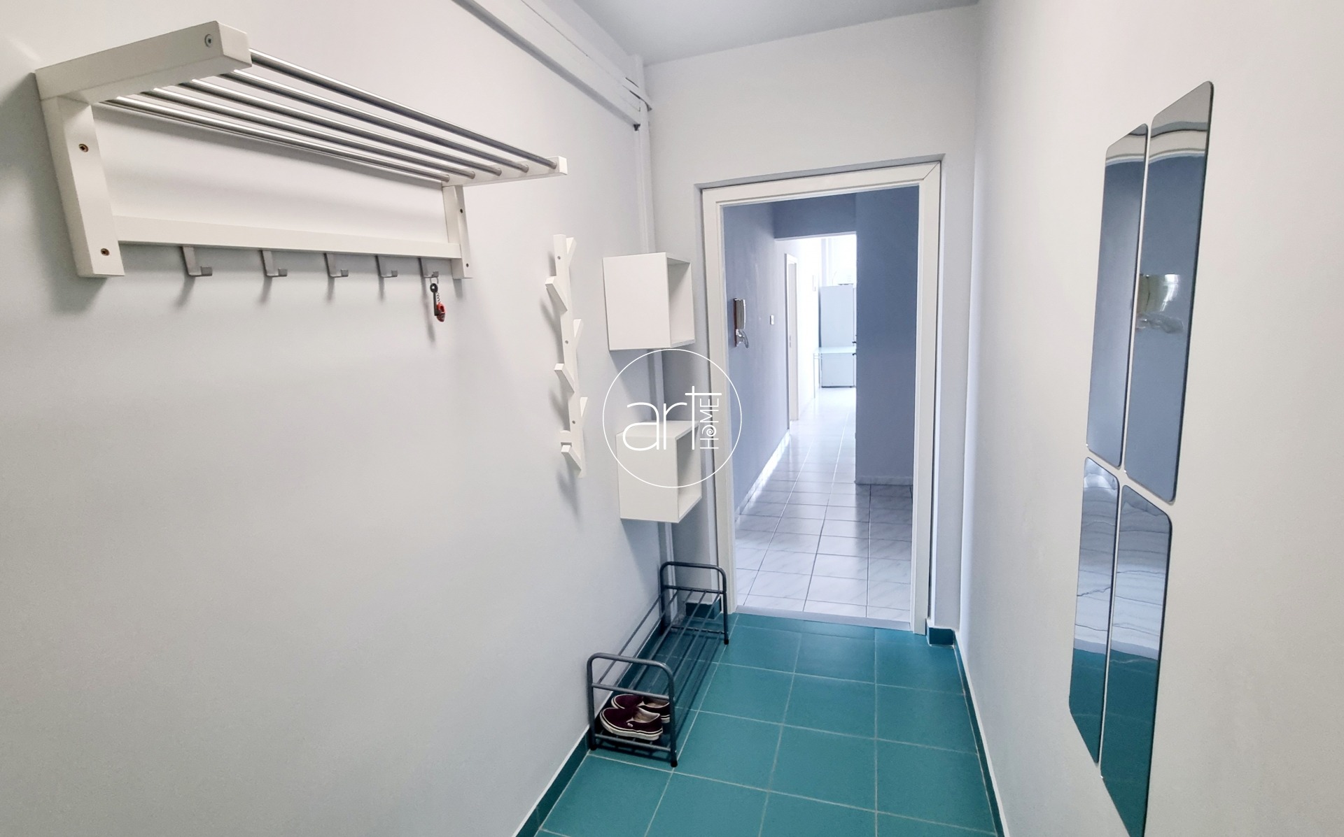 Az ingatlan a 6. emeleten található, 68 m2-es, kihelyezett előteres. Tágas előszobával rendelkezik, a közlekedőből nyílik egy külön kamra, egy gyönyörűen felújított kádas fürdőszoba ( mosógéppel) és egy különálló wc.