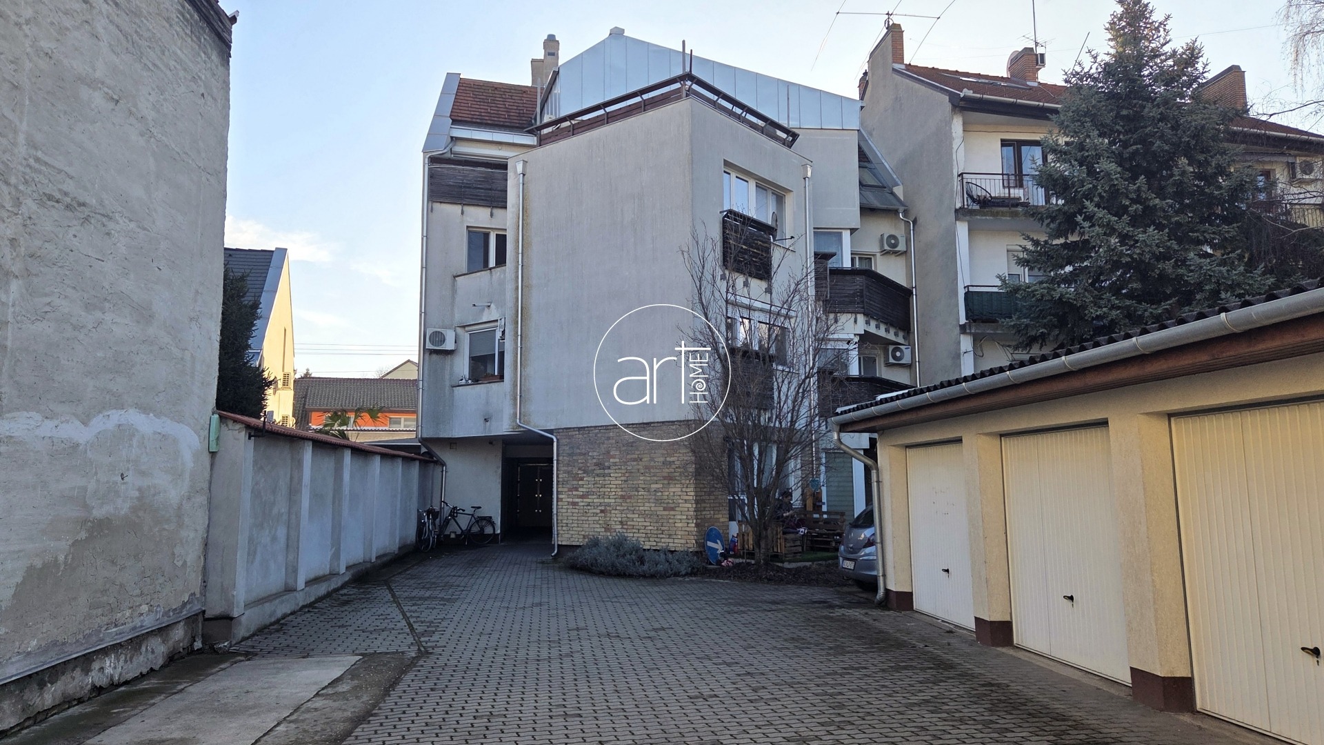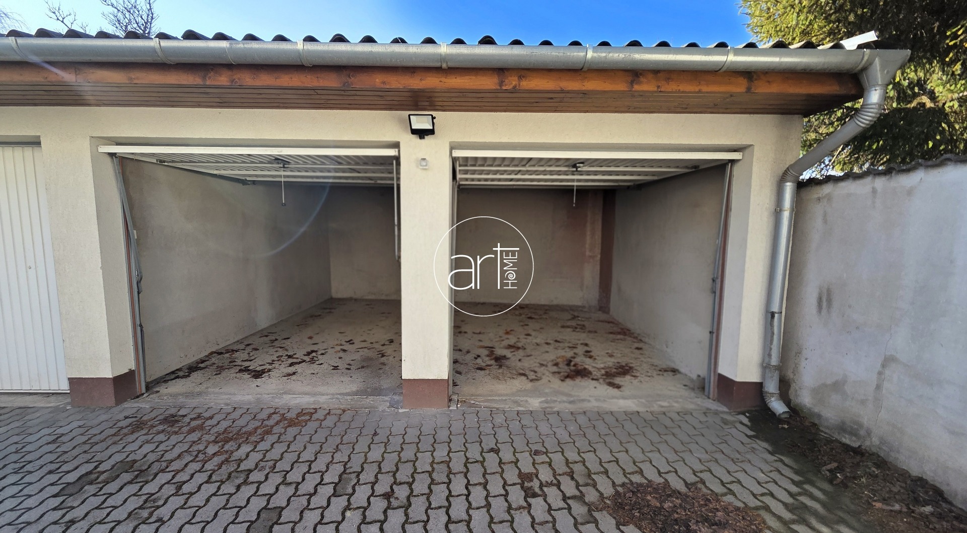 Az ingatlan rendelkezik még két, külön-külön, önálló helyrajzi számmal rendelkező, galériázott modern garázzsal: az egyik garázs elektromos kapuval felszerelt, így kényelmes a be- és kihajtás, a másiknál billenős kapus megoldás van, csak a villanymotor üzembe helyezése szükséges.