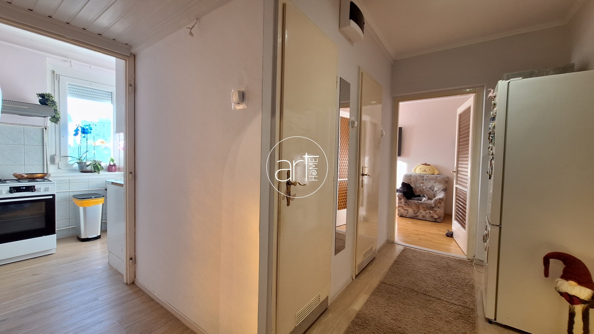 Ez a lakás az egyik legpraktikusabb elosztású panel otthon Szegeden. A nappalin kívül három külön bejáratú szoba áll rendelkezésre, így akár gyerekszobának, dolgozószobának, esetleg étkezőnek vagy vendégszobának is ideális. Különböző életszakaszokban rugalmasan változtatható a helyiségek funkciója. Az egyik szobából keleti fekvésű, fedett erkély nyílik, amely kellemes reggeli napfényt biztosít, viszont a nyári estéken is jól használható, mert kora délutántól árnyékban marad. A konyha kifejezetten világos és tágas, fehér bútorral kialakított. Mivel a korábbi kamrát kibontották, így nagyobb, élhetőbb teret kapott. A lakáshoz tartozik egy kihelyezett előtér is, amely rendkívül hasznos: előszobaként, tárolóként kiválóan funkcionál, így a hűtő vagy akár egy kamraszekrény is kényelmesen elhelyezhető a közlekedőben, tehermentesítve a konyhát.