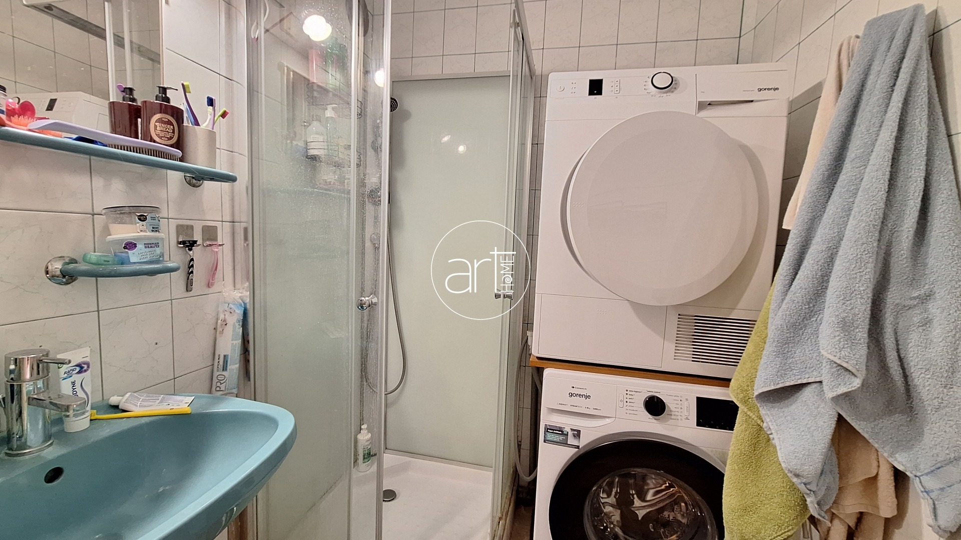A szobák laminált parkettás borításúak, a falakat néhány éve glettelték és festették. A folyosón, a konyhában és a vizes helyiségekben modern, könnyen tisztán tartható vinyl padlóburkolat található. A fürdőszoba tusolós kialakítású, a WC külön helyiségben kapott helyet.
