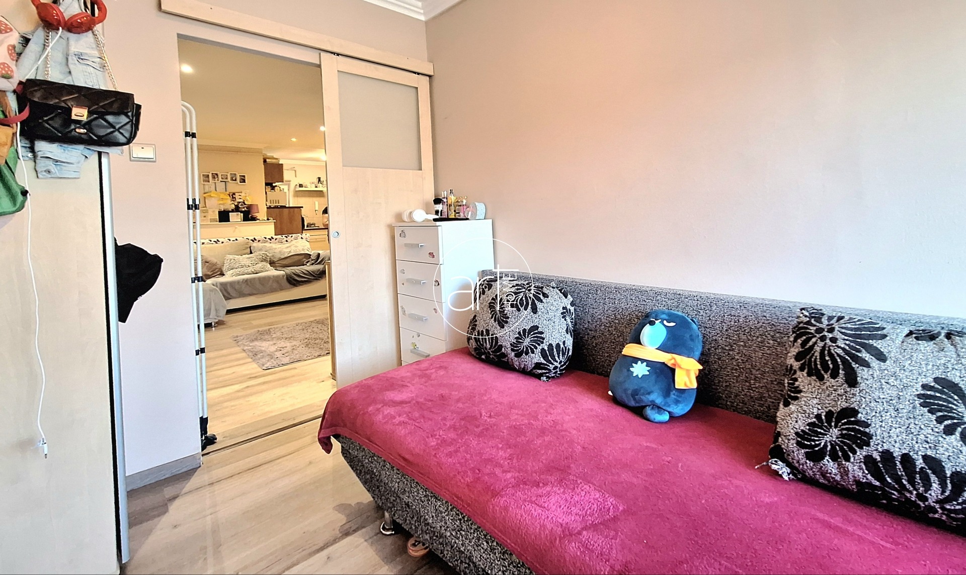 A tágas, világos nappali mellett két praktikus félszoba biztosít lehetőséget háló- vagy dolgozószoba kialakítására, így ideális lehet akár fiatal pároknak, akár egyedülállóknak, akik külön tereket keresnek otthoni munkához vagy vendégek fogadásához. A lakás előtti, fedett függőfolyosón mindössze egy szomszéddal kell osztozni, ami szintén a zavartalan nyugalmat biztosítja.
