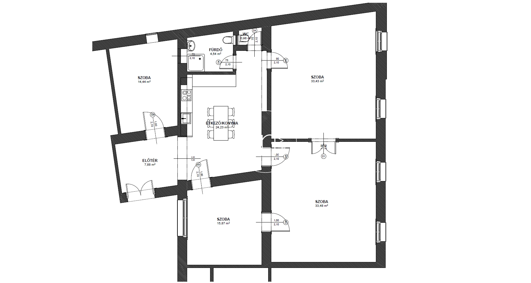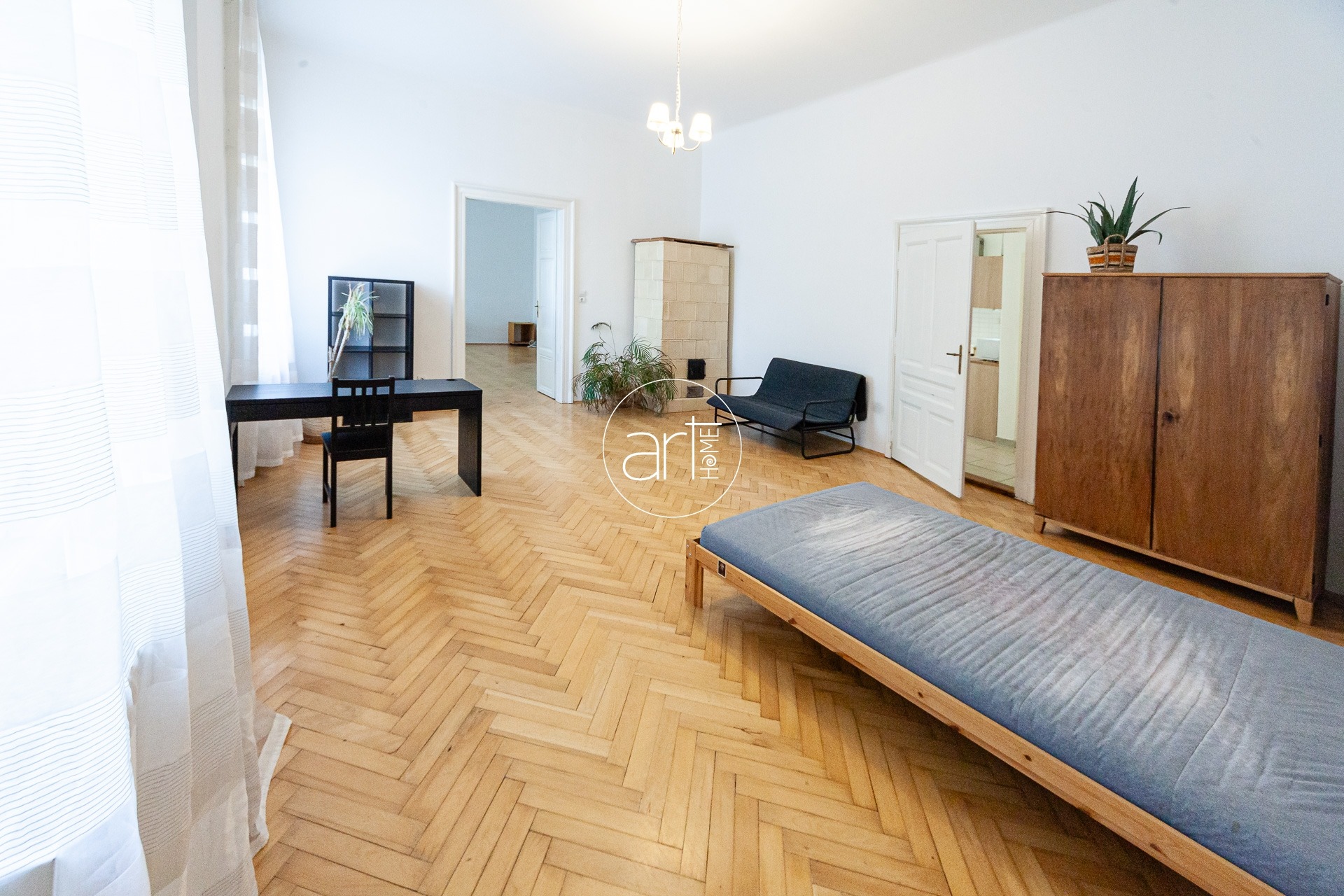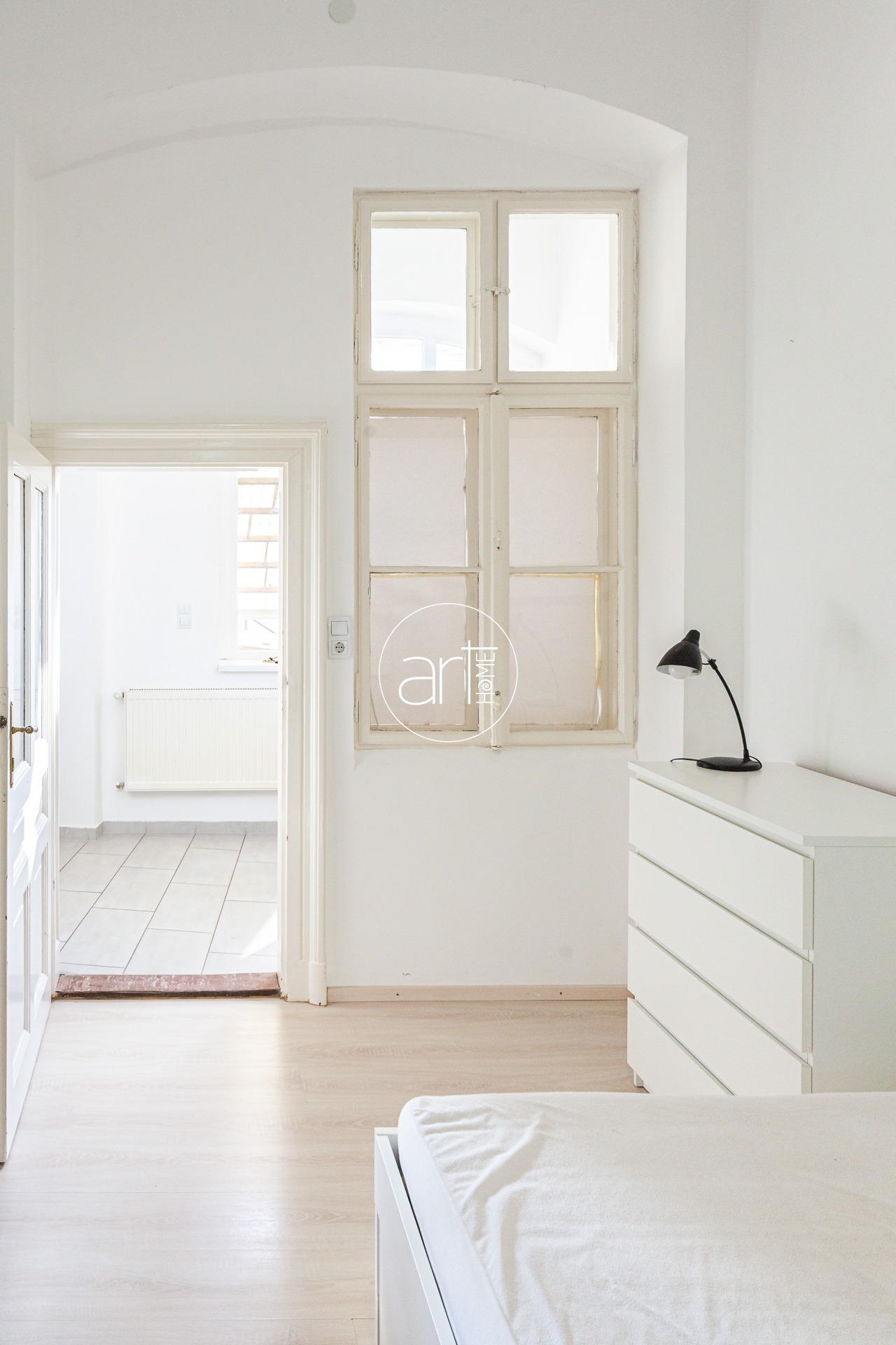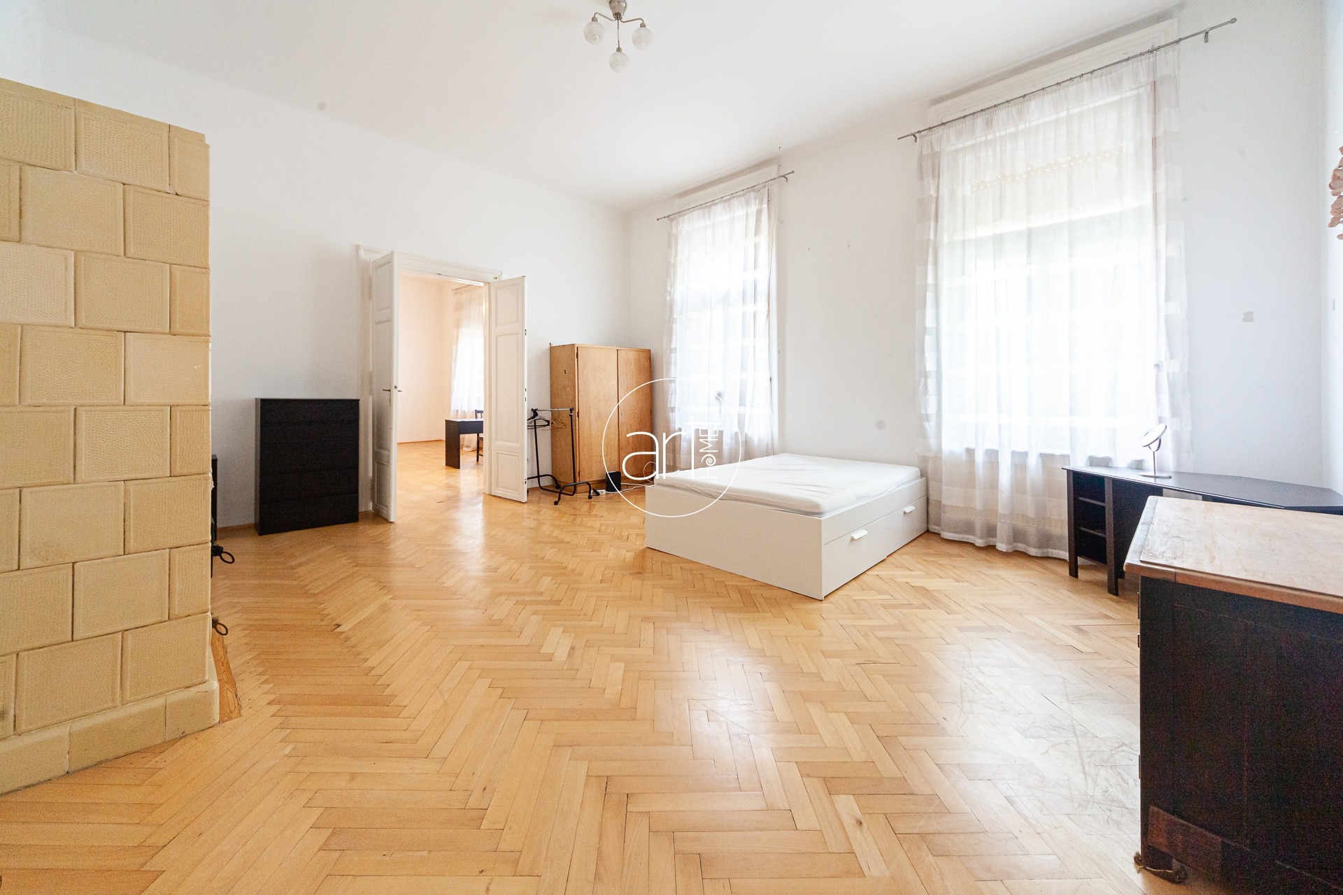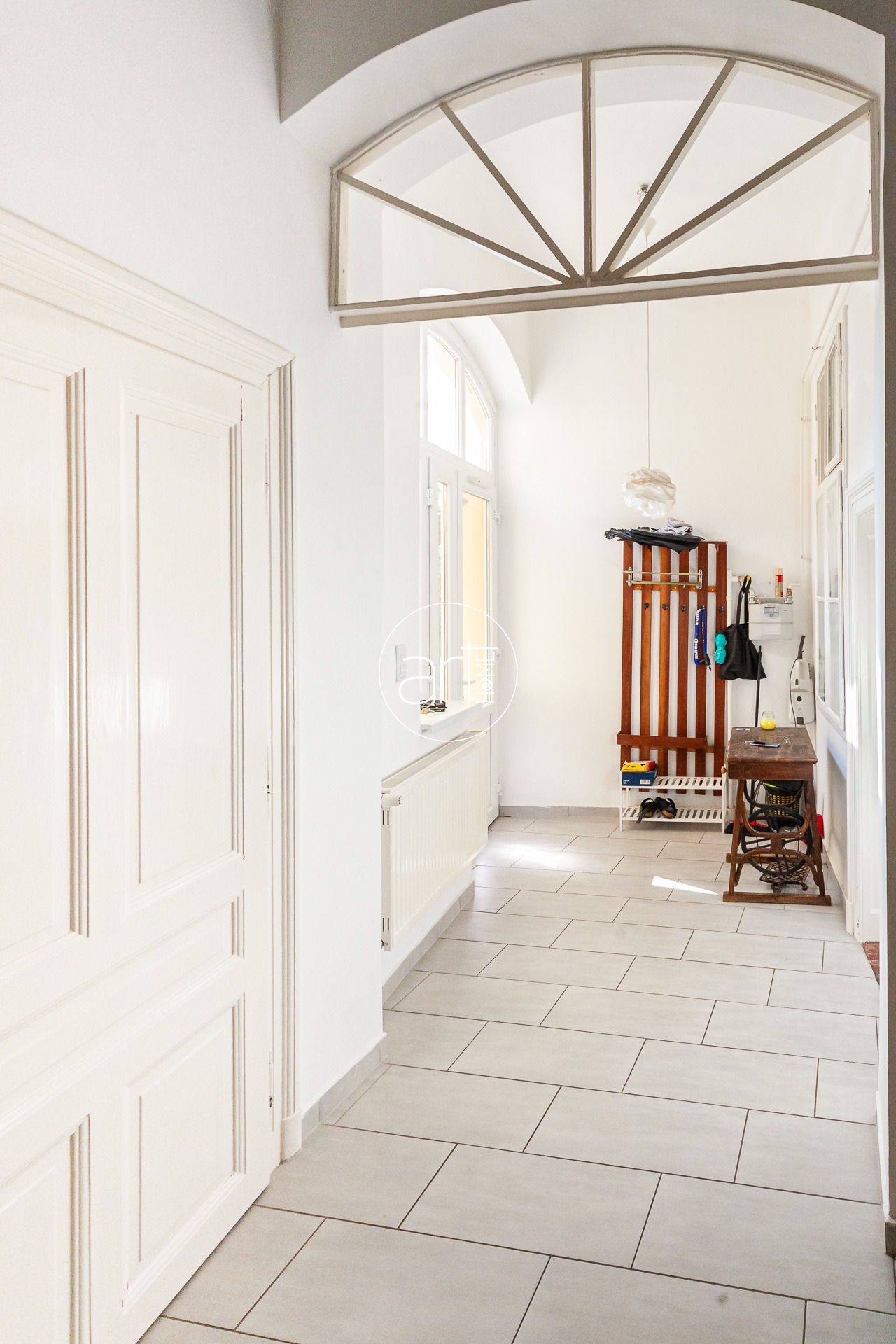 Az eladásra kínált lakás 130 négyzetméter alapterületű, amelyen 4 külön bejáratú szoba és egy tágas étkező található. A lakás rendkívül világos, nagy belmagassággal rendelkezik (3,8 m), amely tovább növeli a tágasság érzetét.