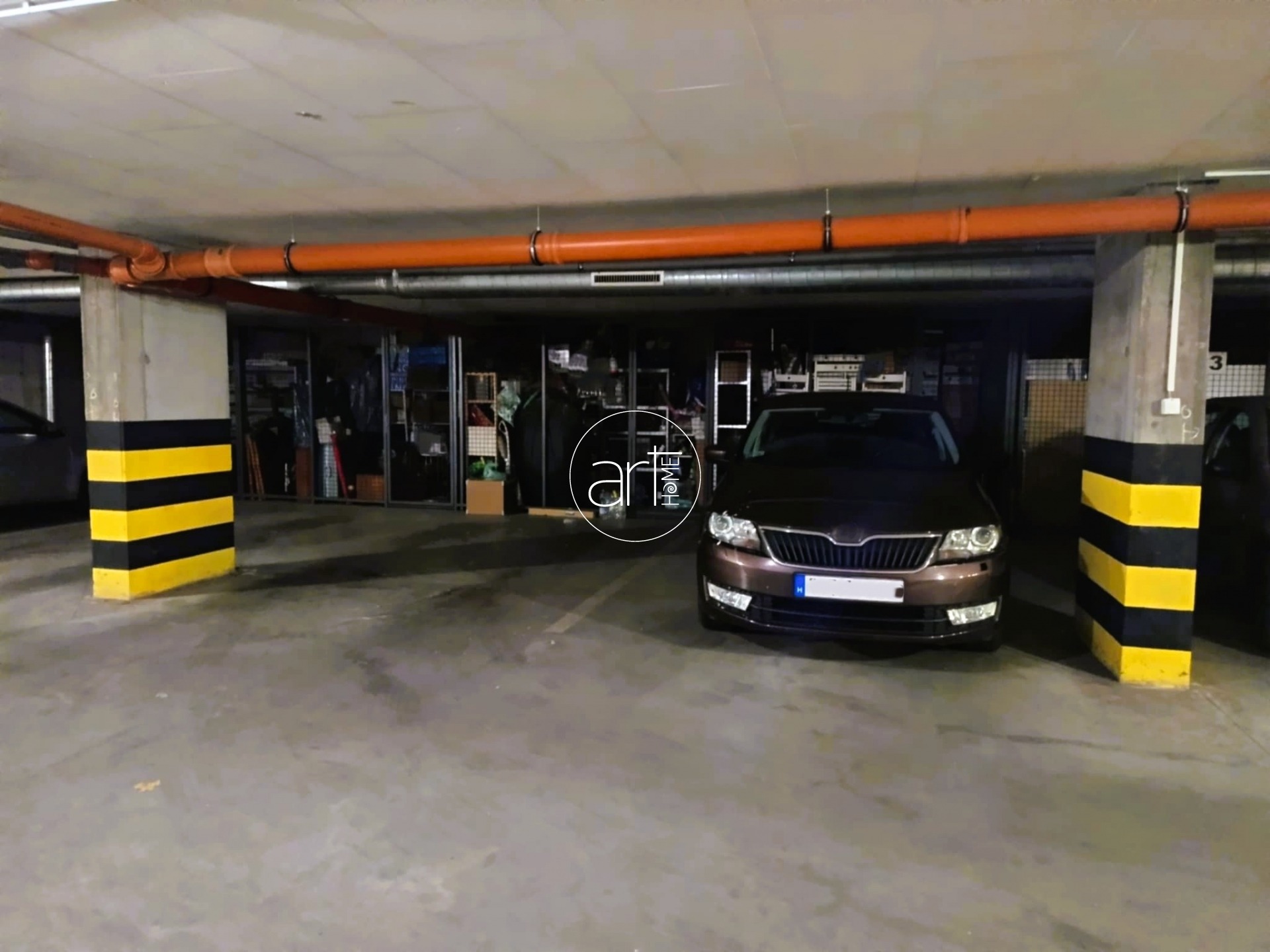 A lakáshoz tartozik saját parkolóhely a teremszinten, valamint egy 3 m²-es zárt, önálló tároló, amelyek ára együtt 12,4 millió Ft.
