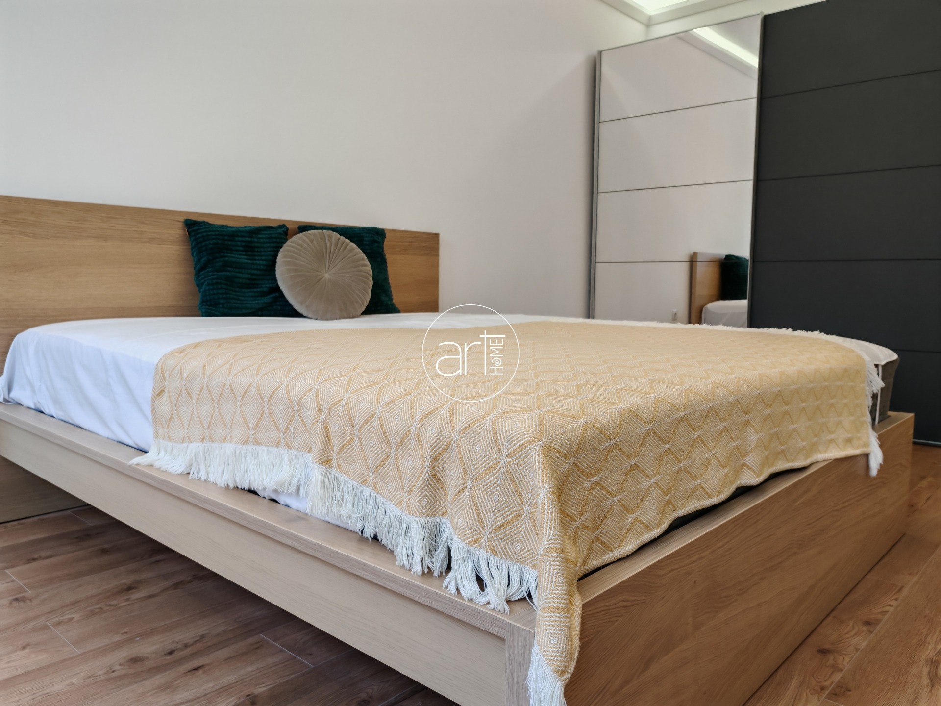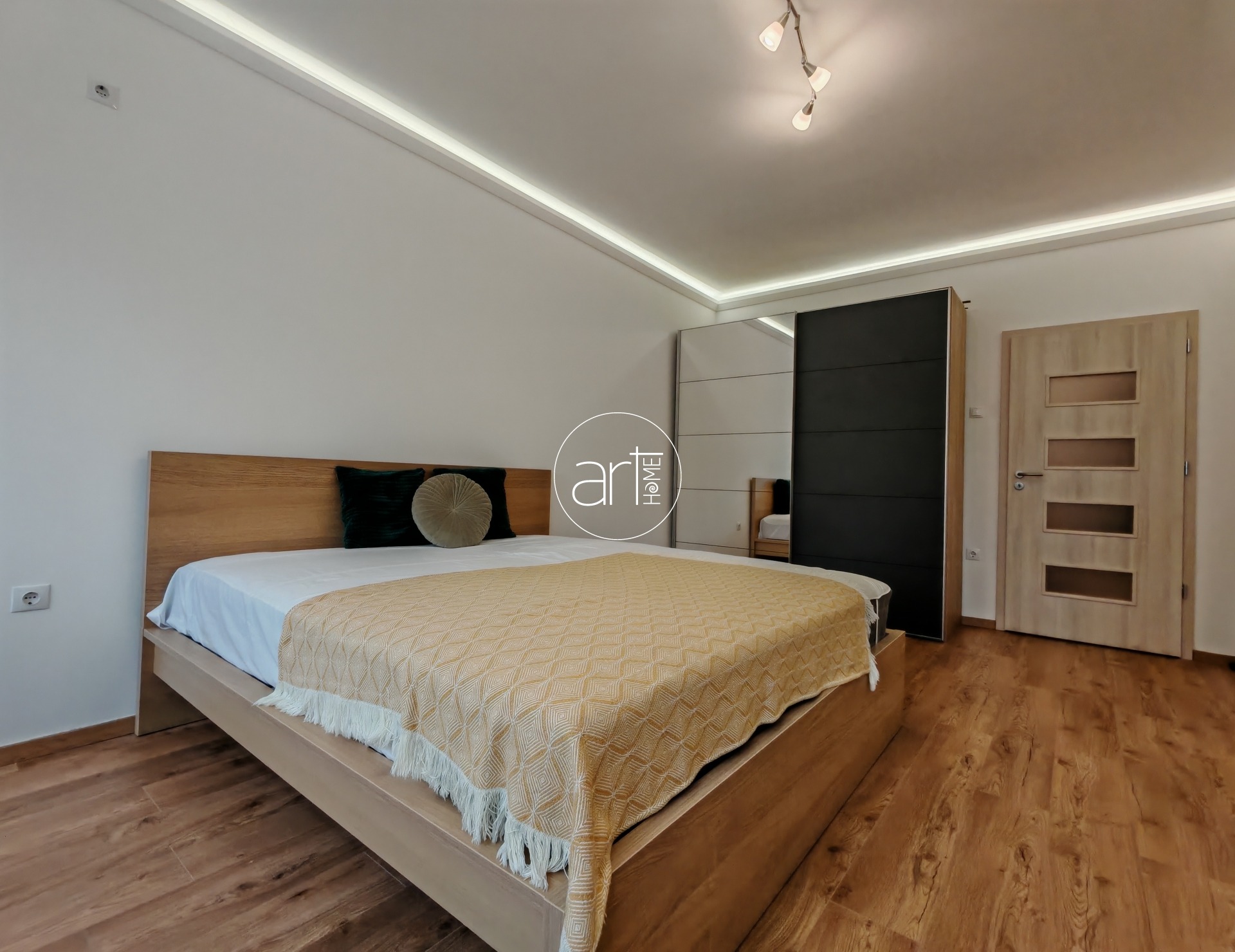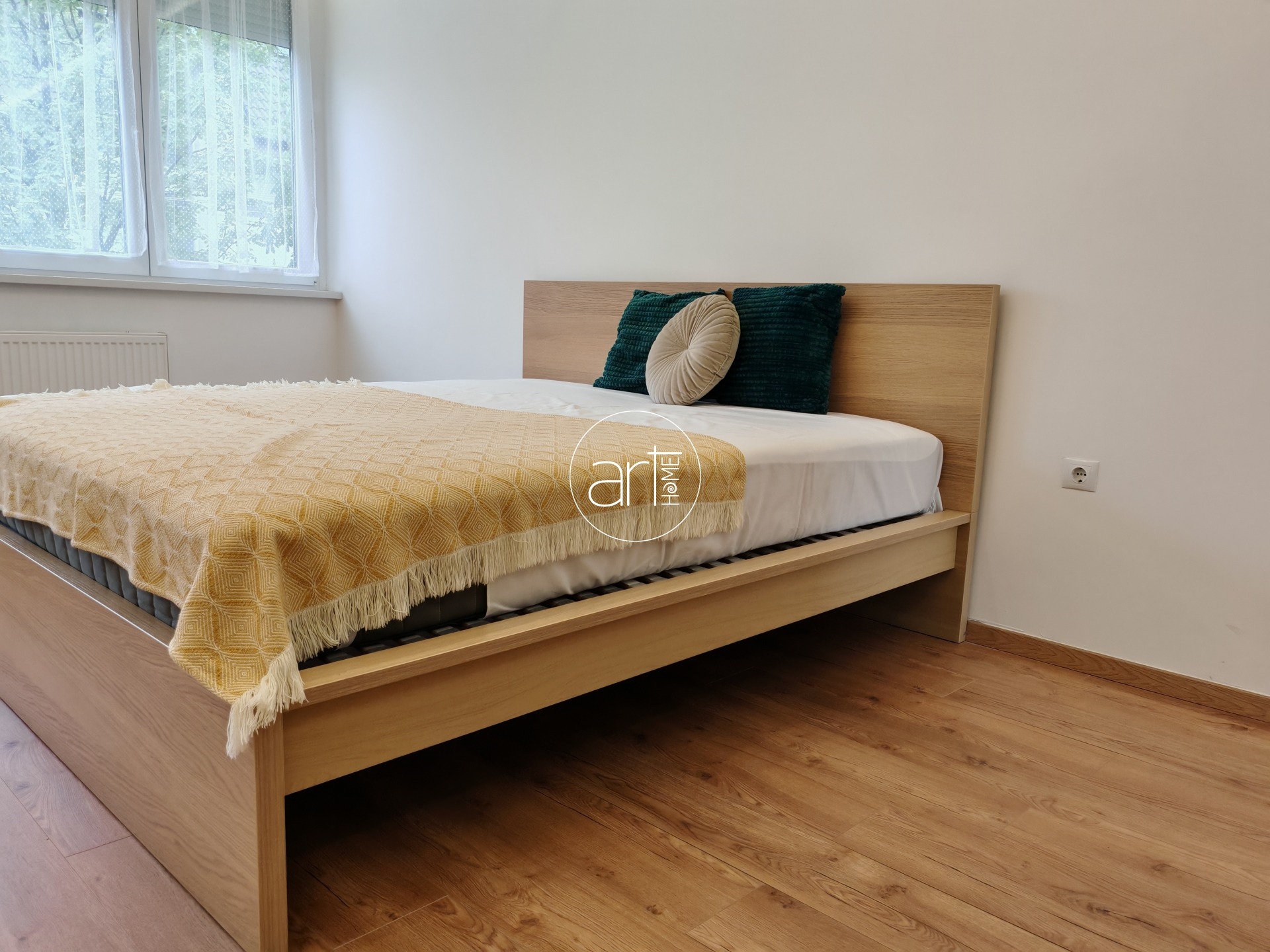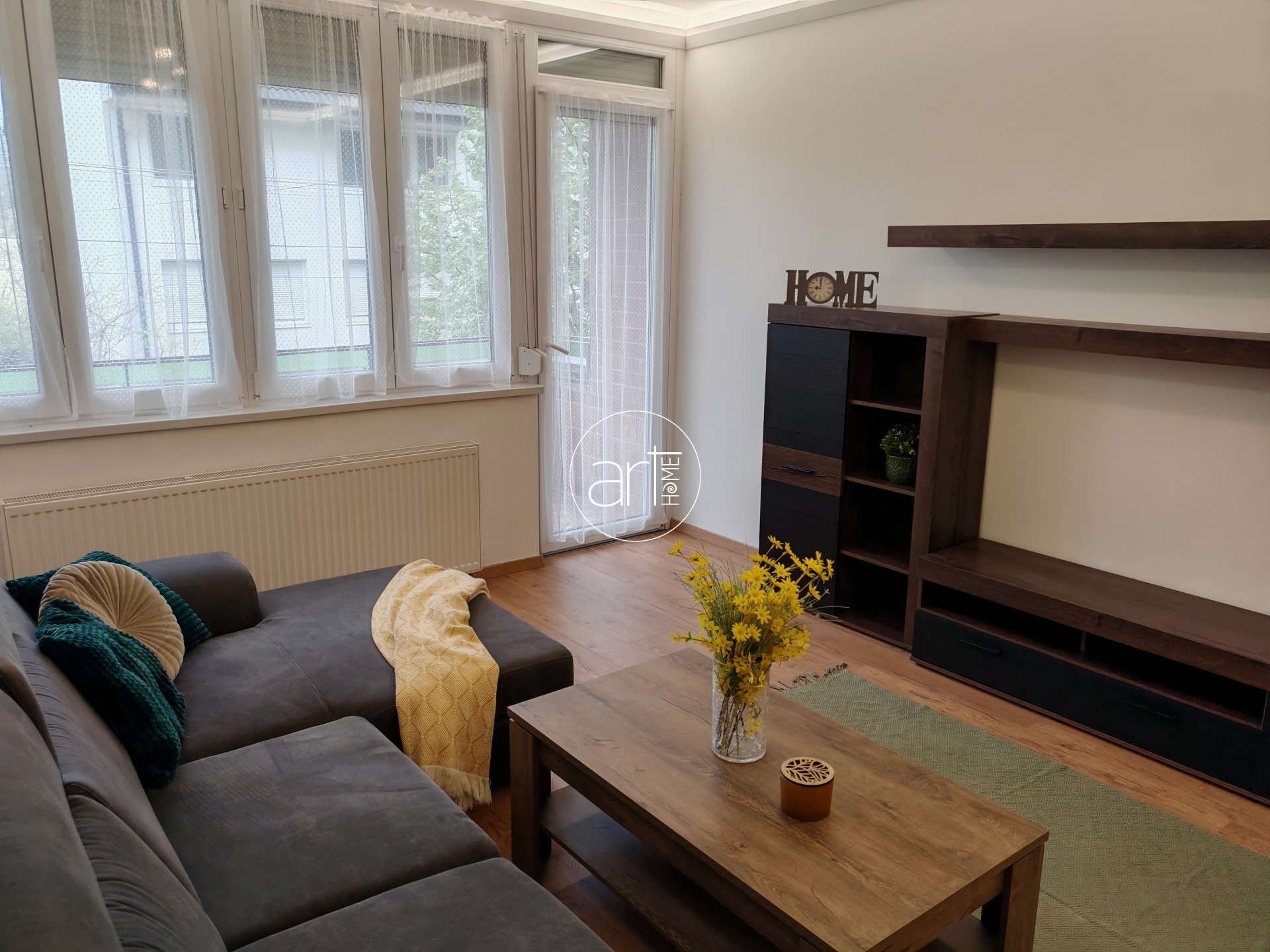A képek is jól mutatják a lakás hangulatát: a nagy ablakoknak köszönhetően rendkívül világos nappali, letisztult, otthonos berendezéssel, hangulatos pihenőtérrel. Innen nyílik egy kényelmes méretű erkély is. A hálószoba tágas, kényelmes franciaággyal és beépített gardróbbal rendelkezik. A modern, gépesített konyha praktikus kialakítású, ideális akár mindennapi főzéshez is.