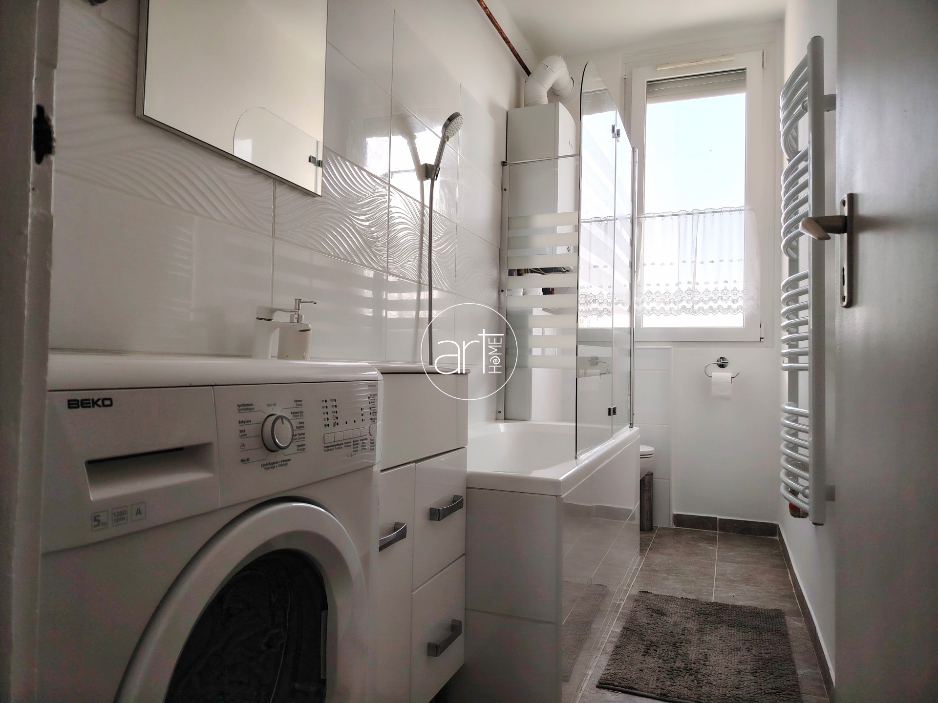 A lakás teljesen bútorozott és gépesített, így minden adott a kényelmes mindennapokhoz. A hálószobában két egyszemélyes ágy található. A nappali tágas és világos, így igazán otthonos tér fogad. A konyha jól felszerelt: tűzhely, hűtő, mikró is rendelkezésre áll. A fürdőszobában található mosógép. A klíma gondoskodik a kellemes hőmérsékletről a nyári hónapokban, télen pedig a központi fűtés radiátoros hőleadükkal biztosítja a meleget.