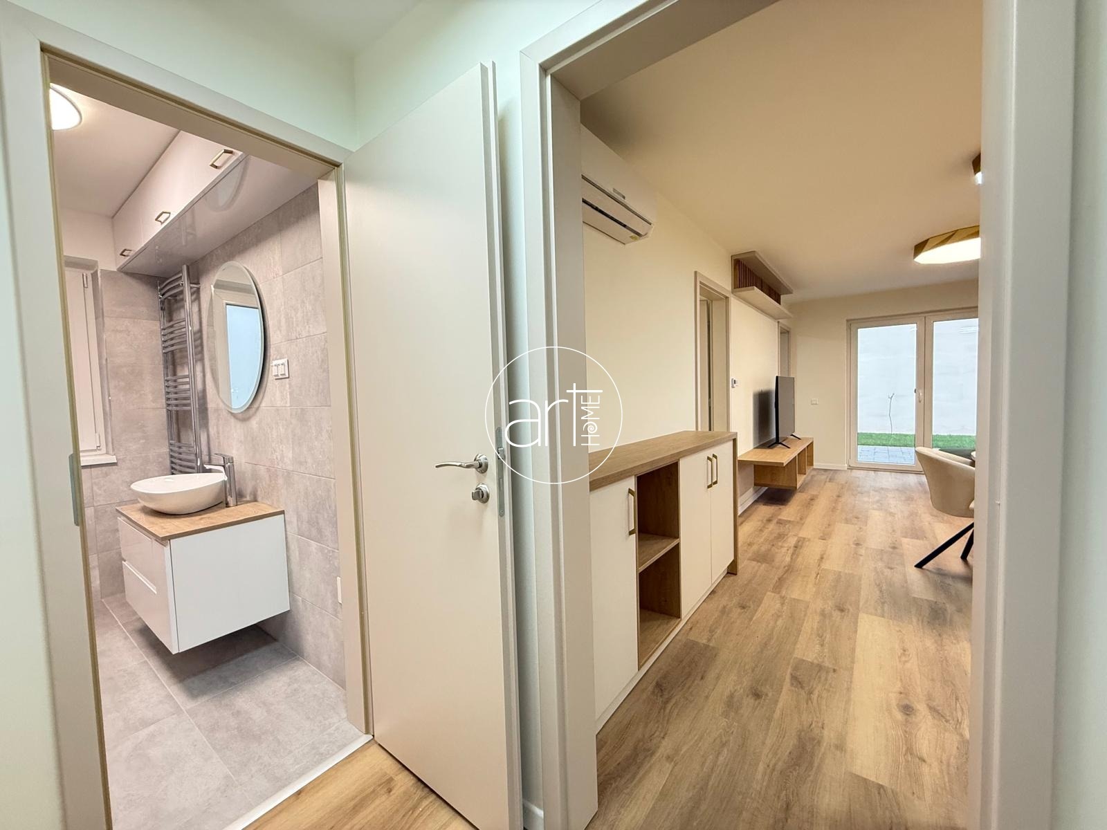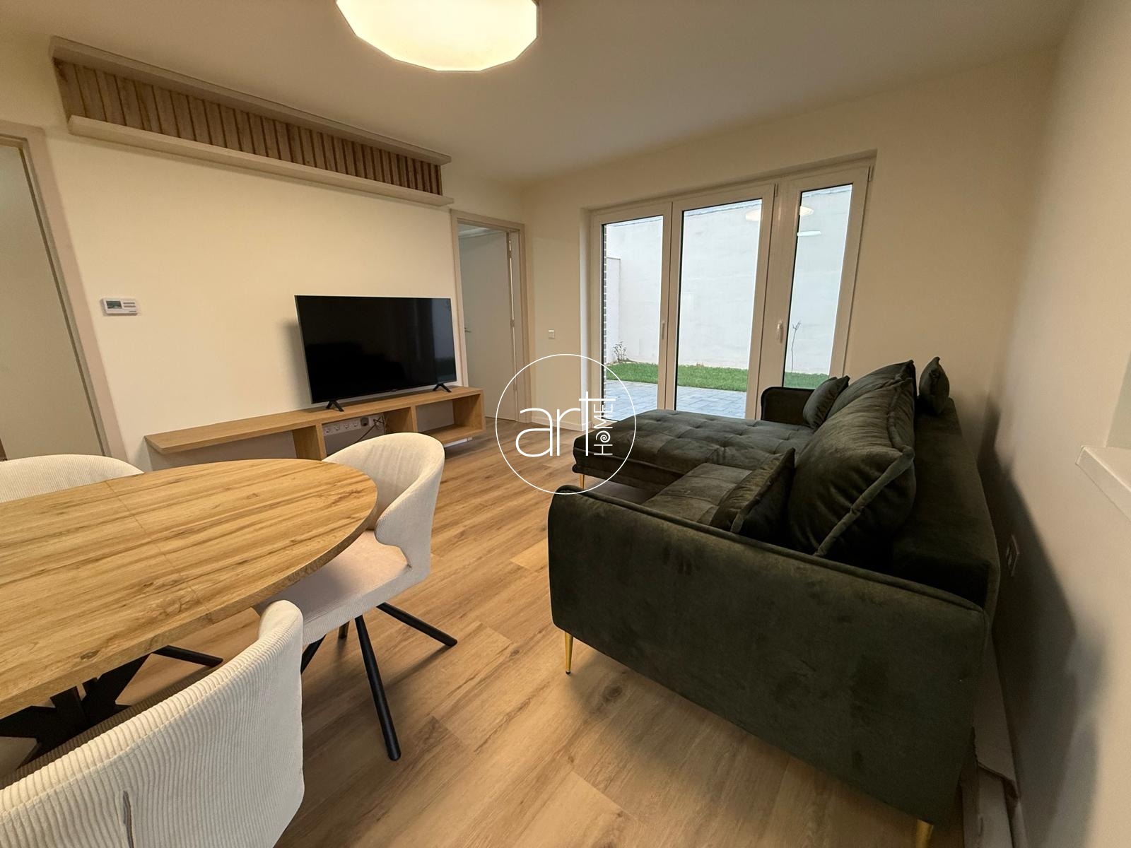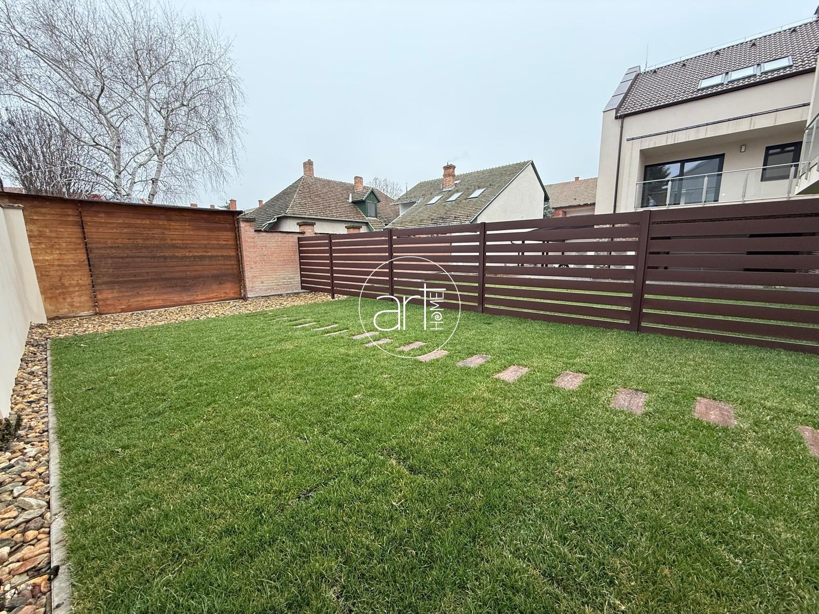Kiadó egy nappali + 2 hálószobás, modern, különleges adottságokkal rendelkező lakás, amelyhez 20 nm terasz, és 130 m²-es saját udvar és fedett autóbeálló tartozik.