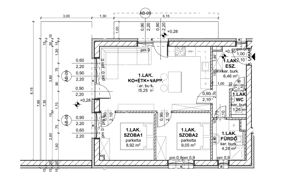 - 2 hálószoba (az egyikben franciaágy található, a második háló / dolgozószoba, ahol kinyitható kanapé kerül még)